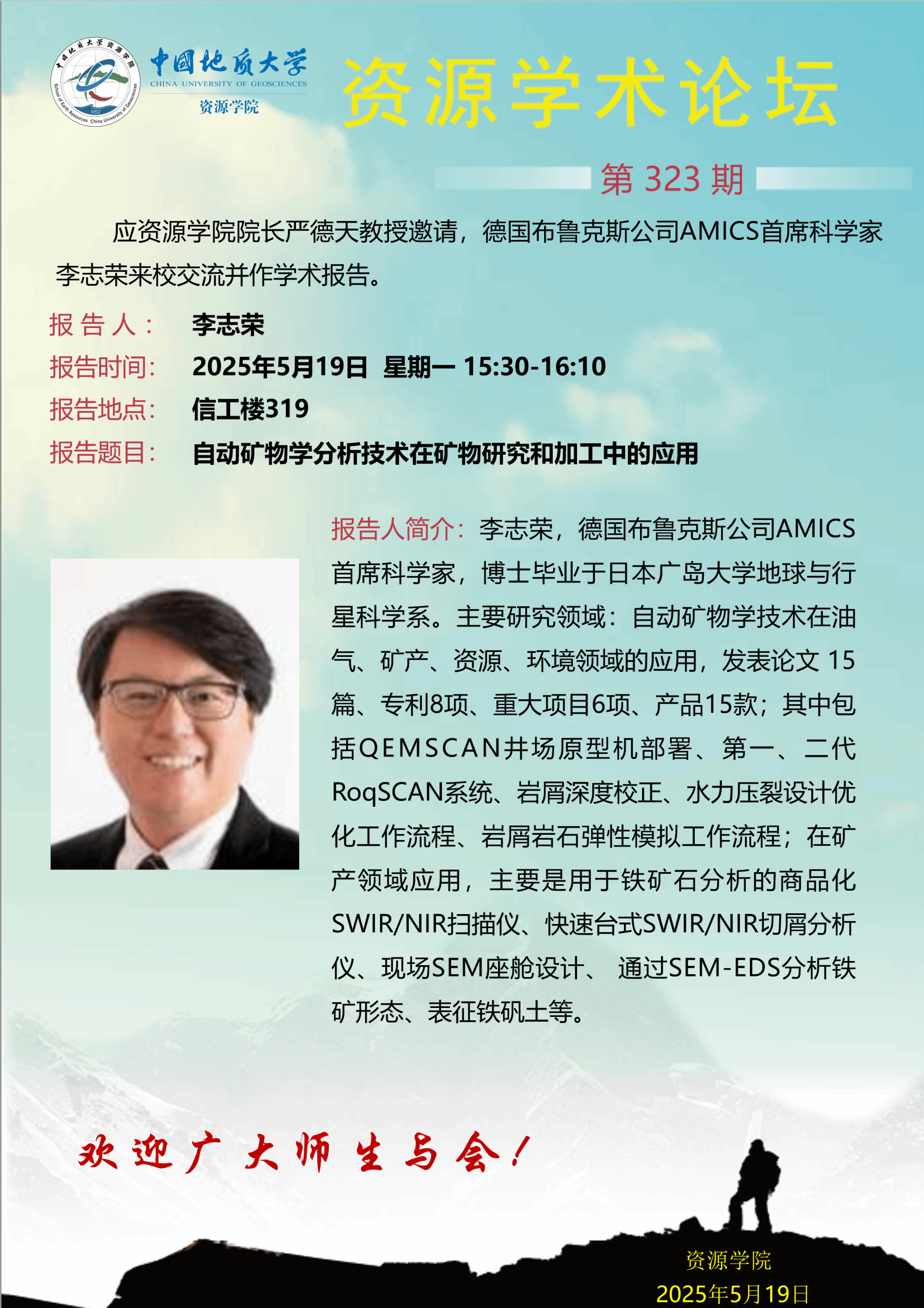 【5月19日】第323期资源学术论坛:李志荣学术报告