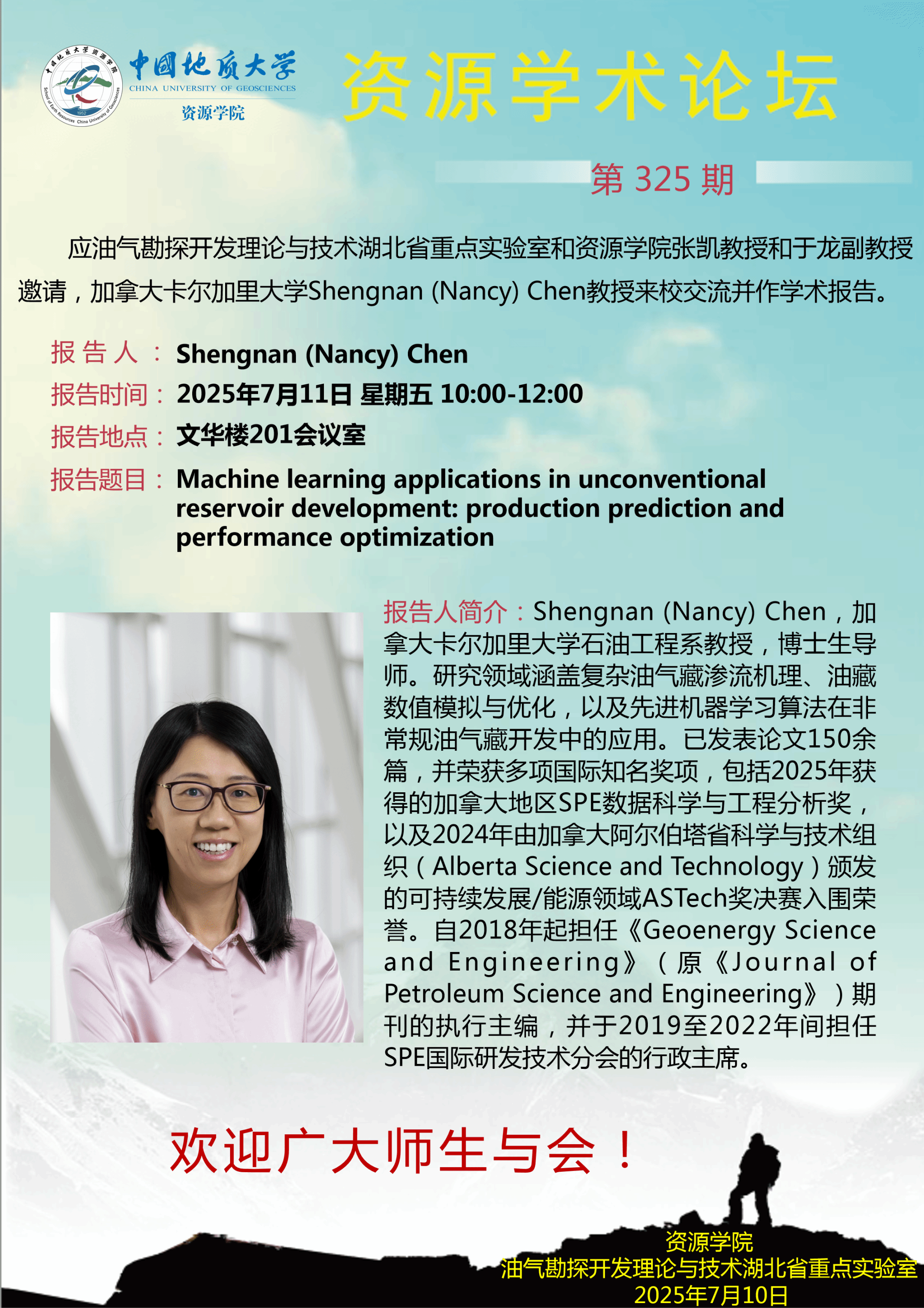 【7月11日】第325期资源学术论坛:Shengnan (Nancy) Chen学术报告