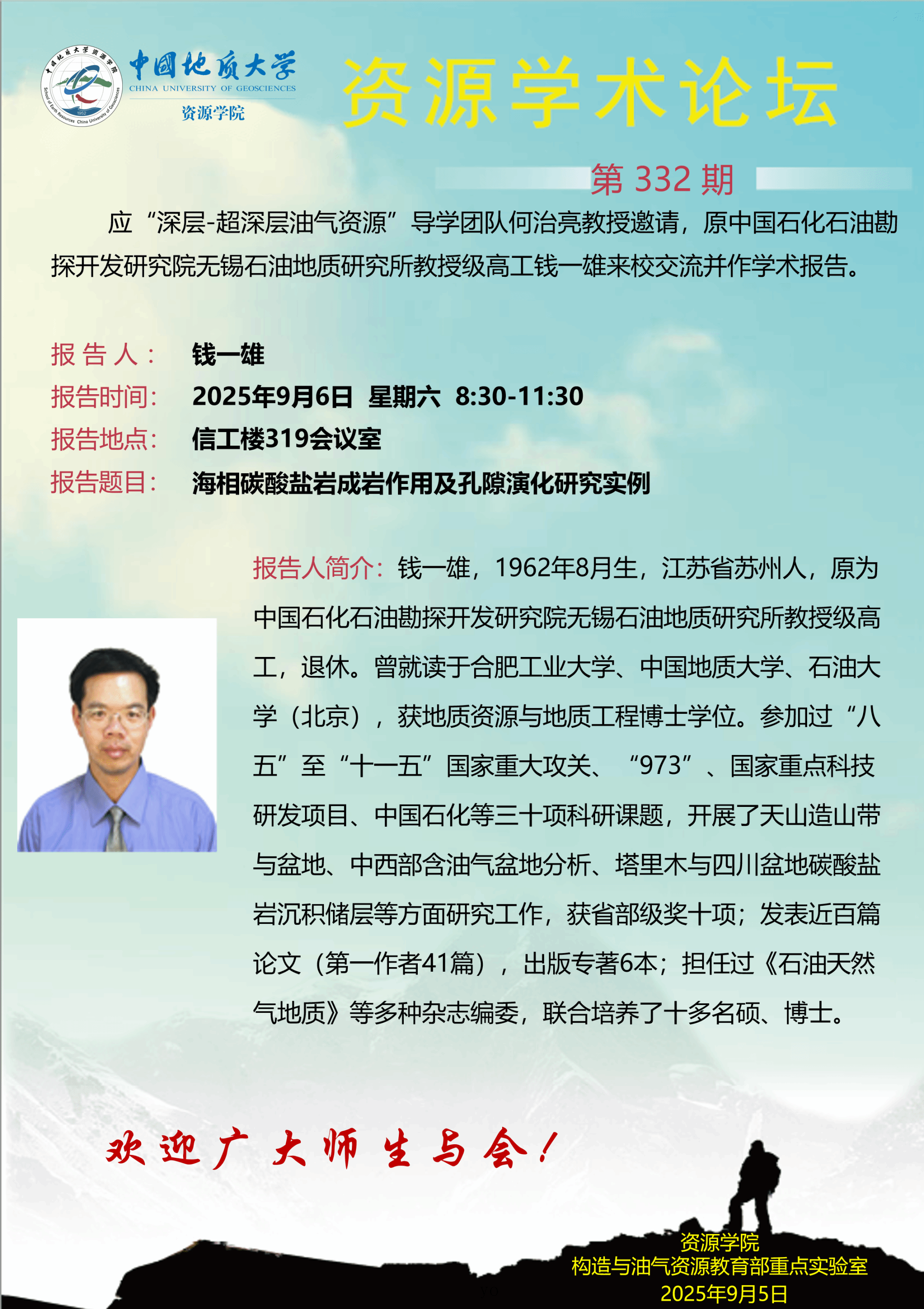 【9月6日】第332期资源学术论坛:钱一雄学术报告