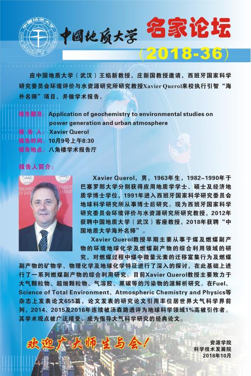 【10月9日】第61期资源学术论坛:Xavier Querol教授学术报告