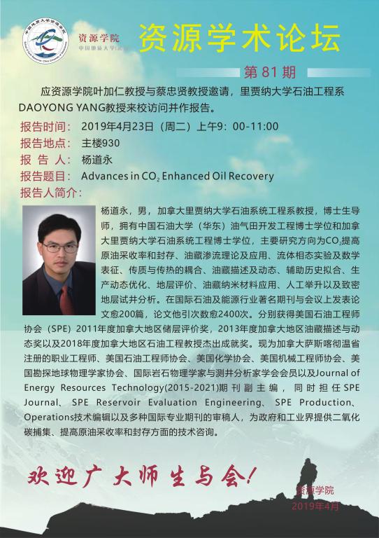 【4月23日】第81期资源学术论坛:DAOYONG YANG学术报告