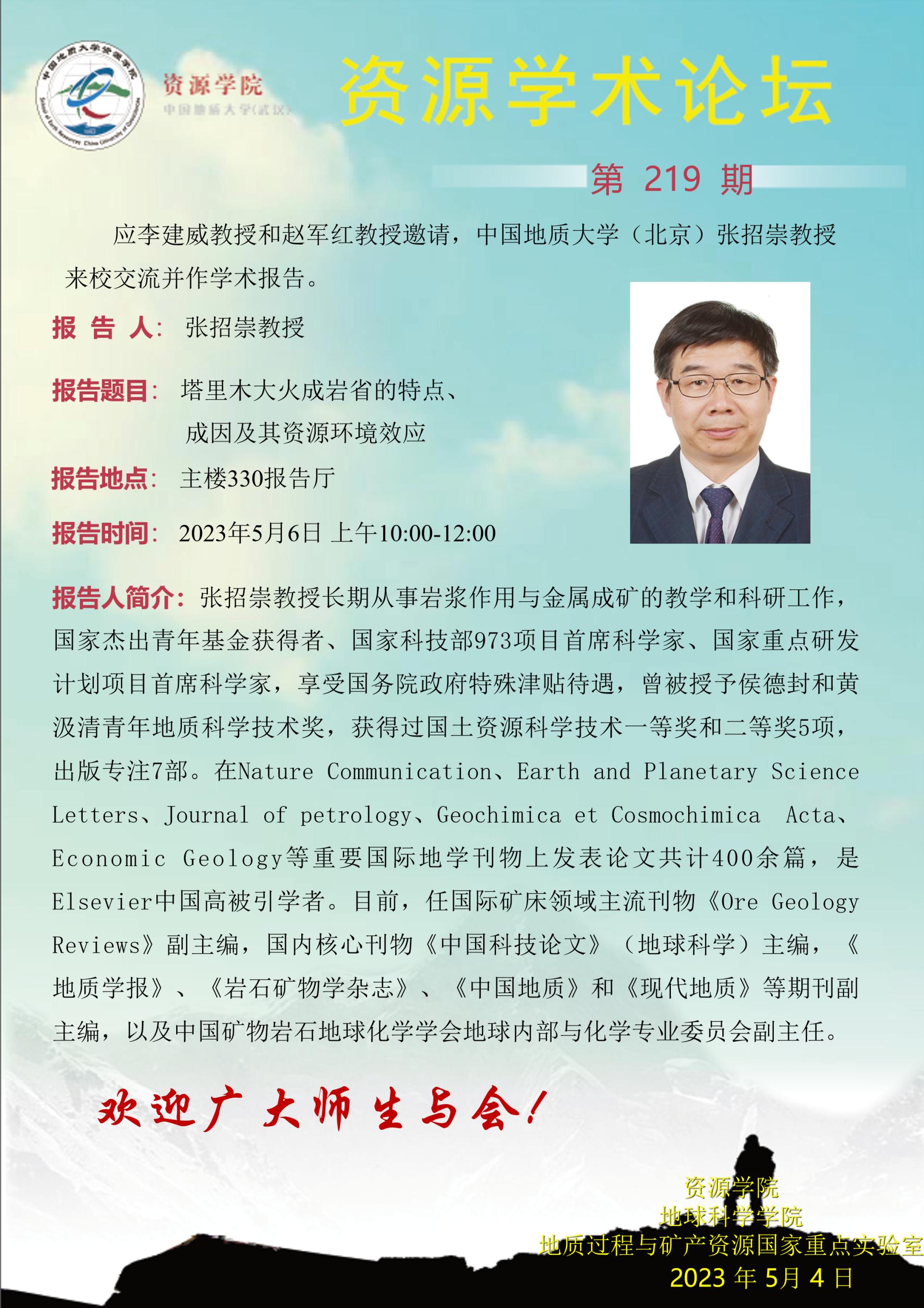 【5月6日】第219期资源学术论坛:张招崇学术报告