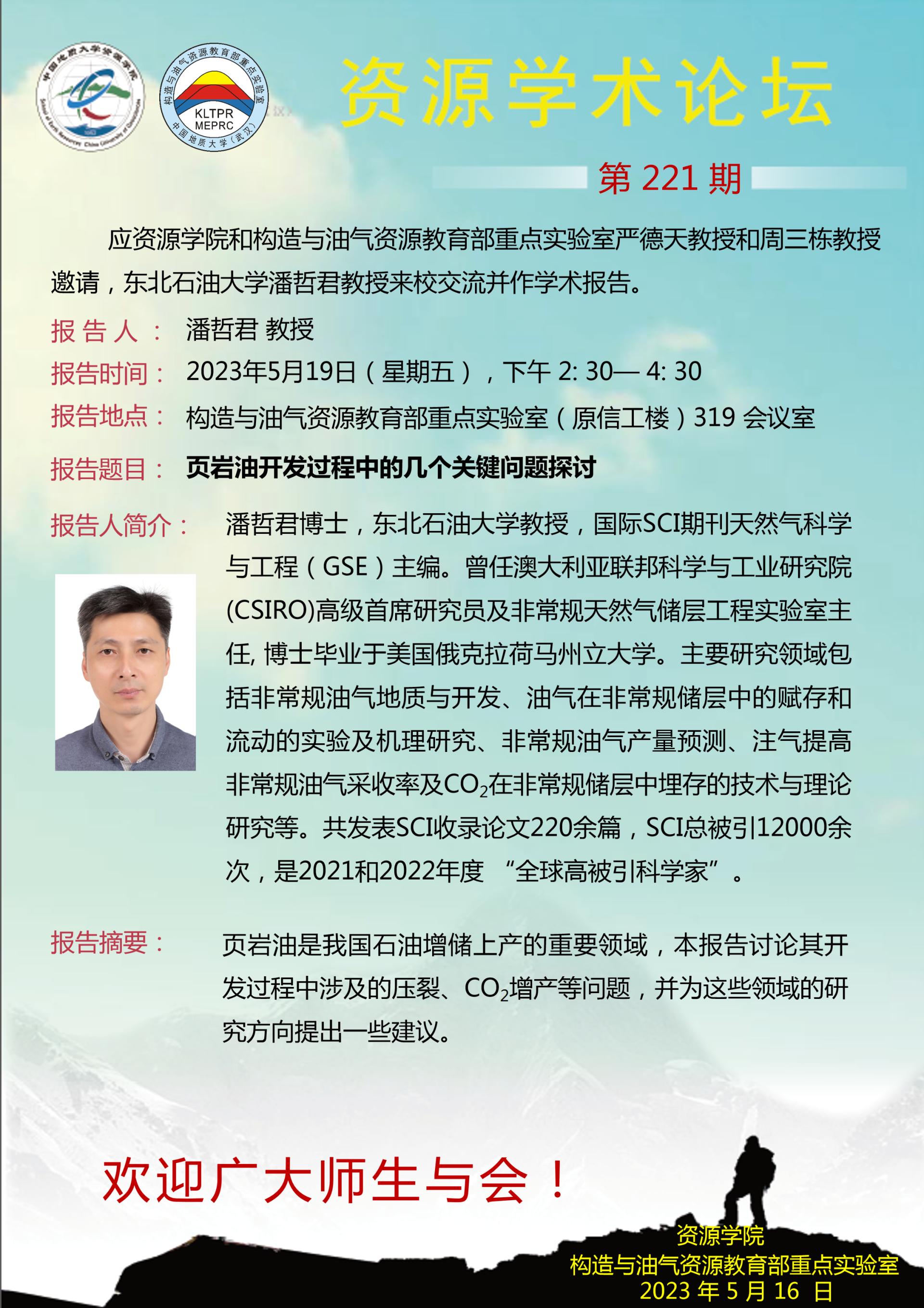 【5月19日】第221期资源学术论坛:潘哲君学术报告