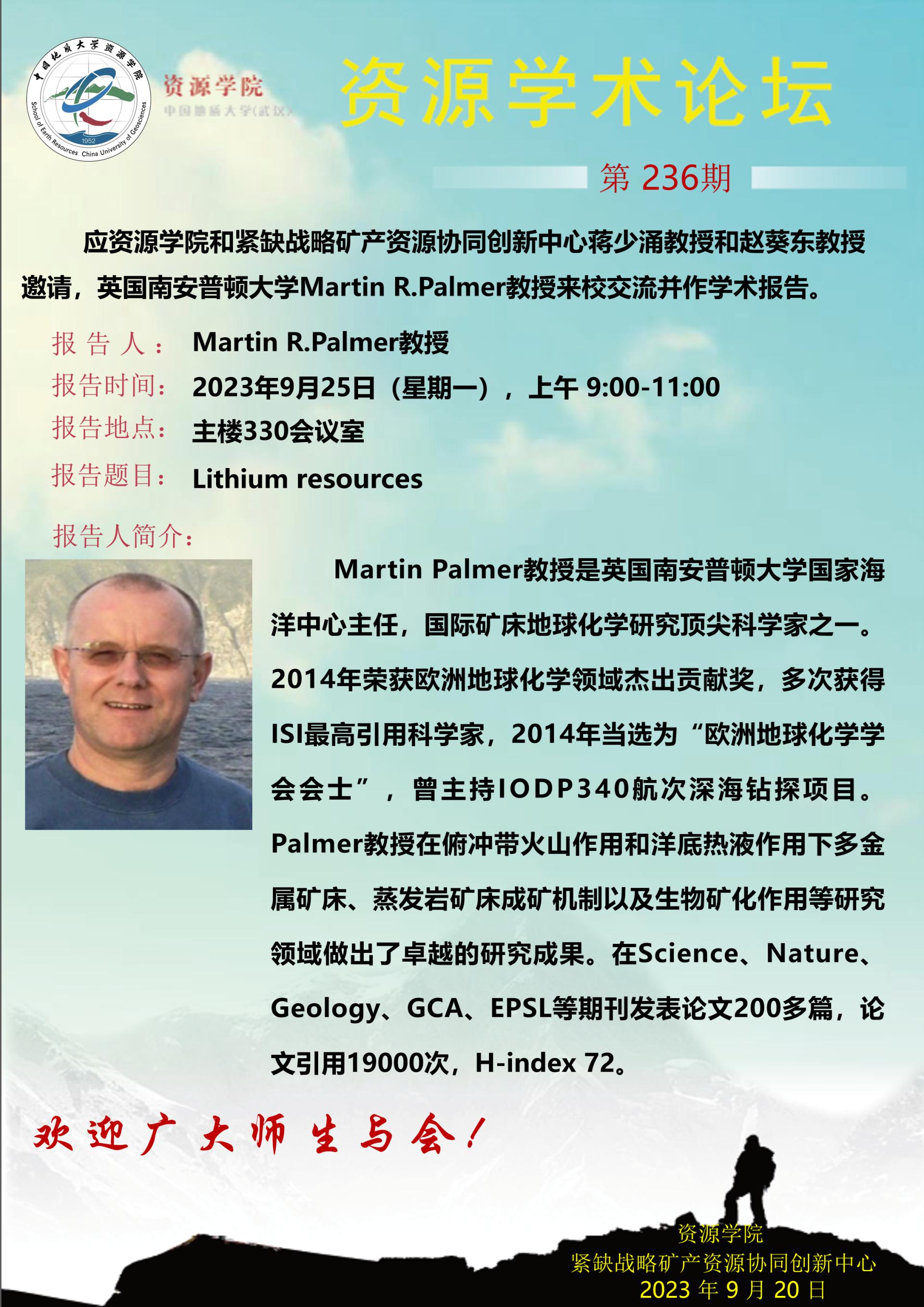 【9月25日】第236期资源学术论坛:Martin R.Palmer学术报告