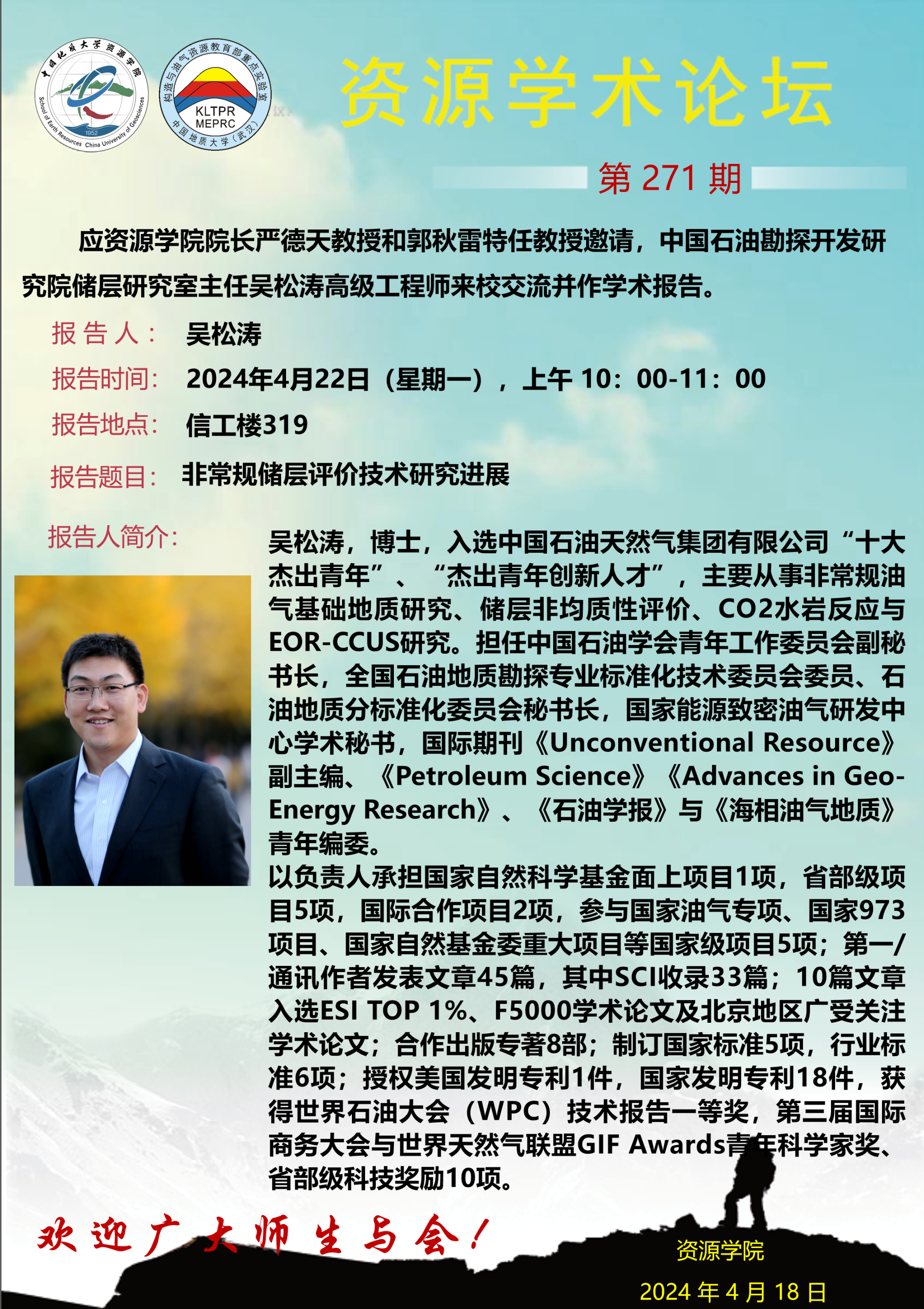 【4月22日】第271期资源学术论坛:吴松涛学术报告