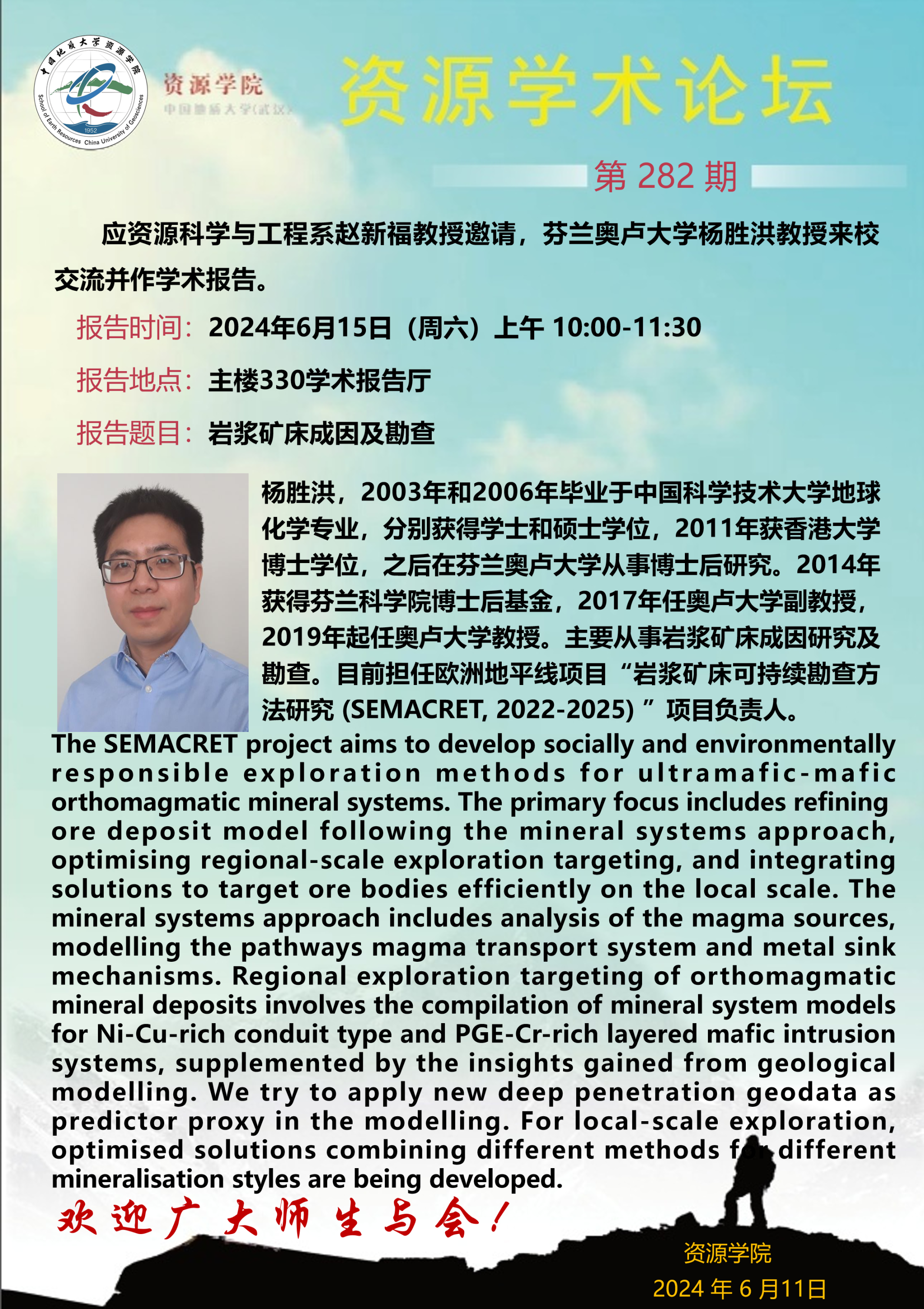 【6月15日】第282期资源学术论坛:杨胜洪学术报告