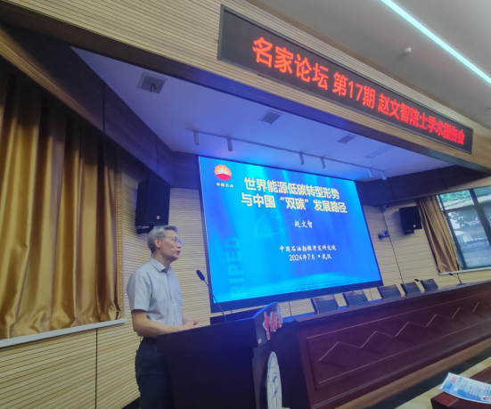 赵文智结合自身对能源研究的经验与成果,从“世界能源转型的基本形势、中国能源转型内涵与趋势、油气在能源转型中的地位、能源转型应对措施与建议”四个方面为大家系统地介绍了世界能源低碳转型形势与中国“双碳”发展路径。指出世界能源转型发展过程不会一帆风顺,并肯定了油气作为最具地缘战略价值的化石能源在能源保障中的重要地位,中国作为世界最大的能源生产与消费国,面对极端气候频发和中美对抗的严峻形势,能源安全比能源转型更为急迫。