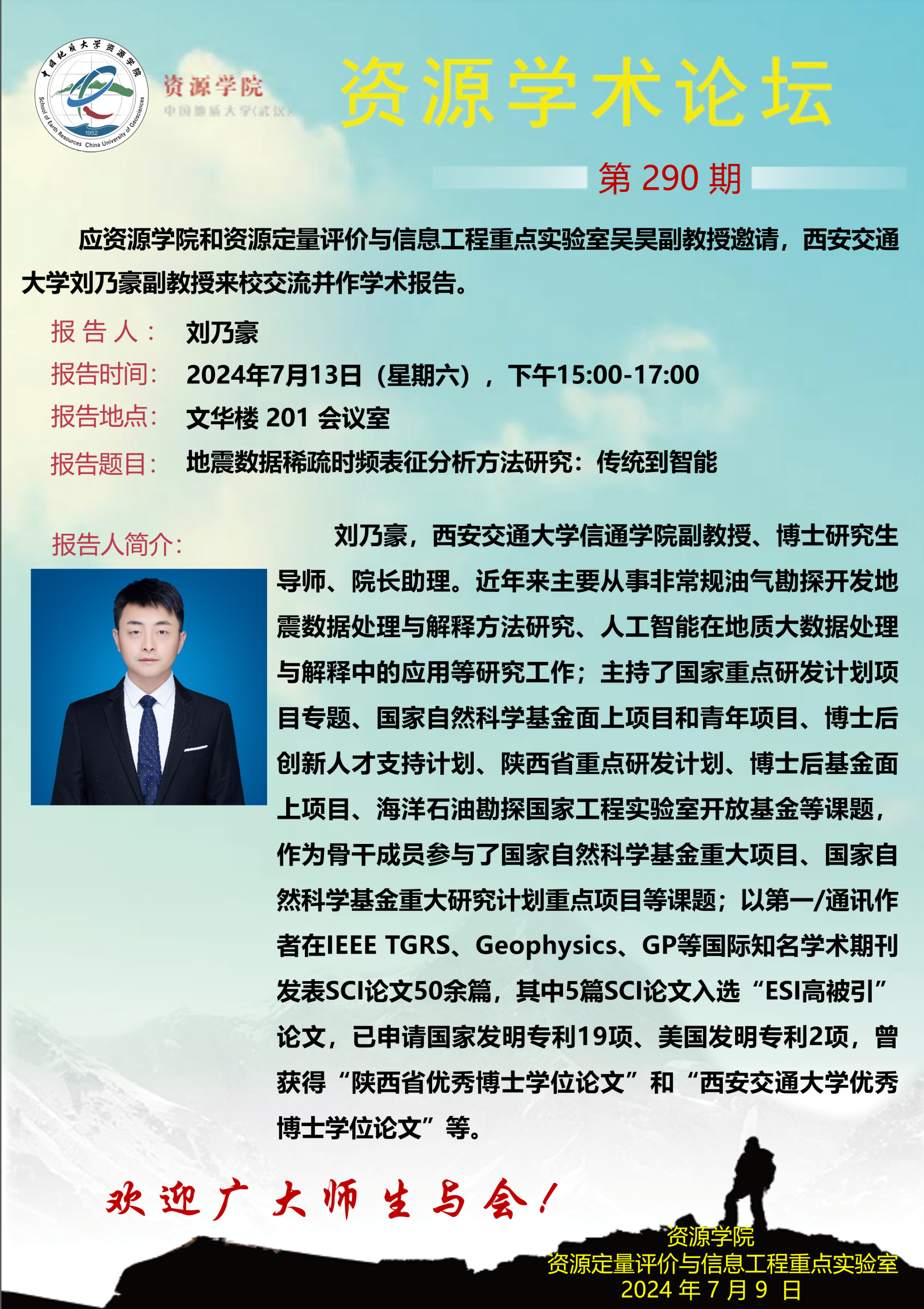 【7月13日】第290期资源学术论坛:刘乃豪学术报告