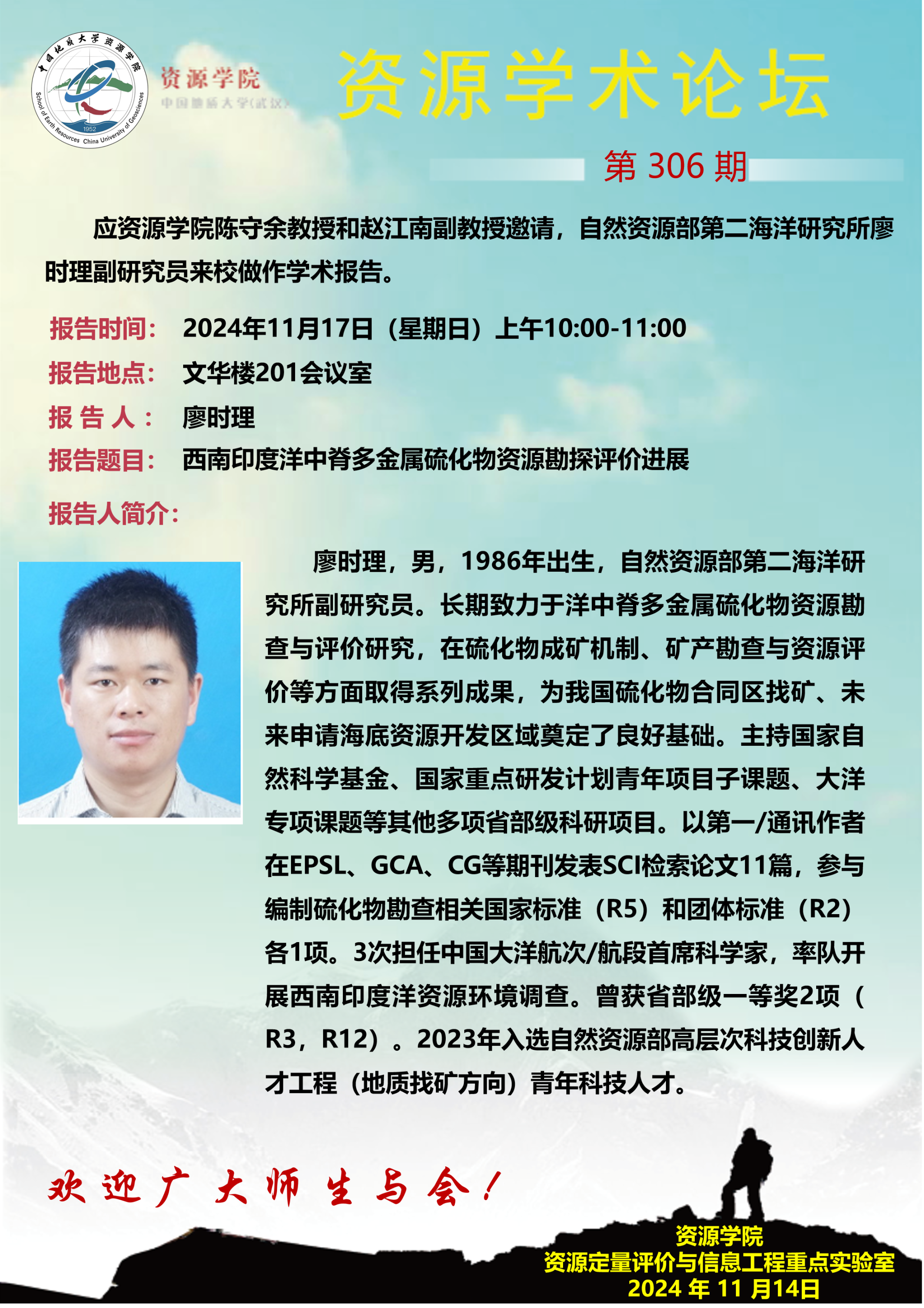 【11月17日】第306期资源学术论坛:廖时理学术报告