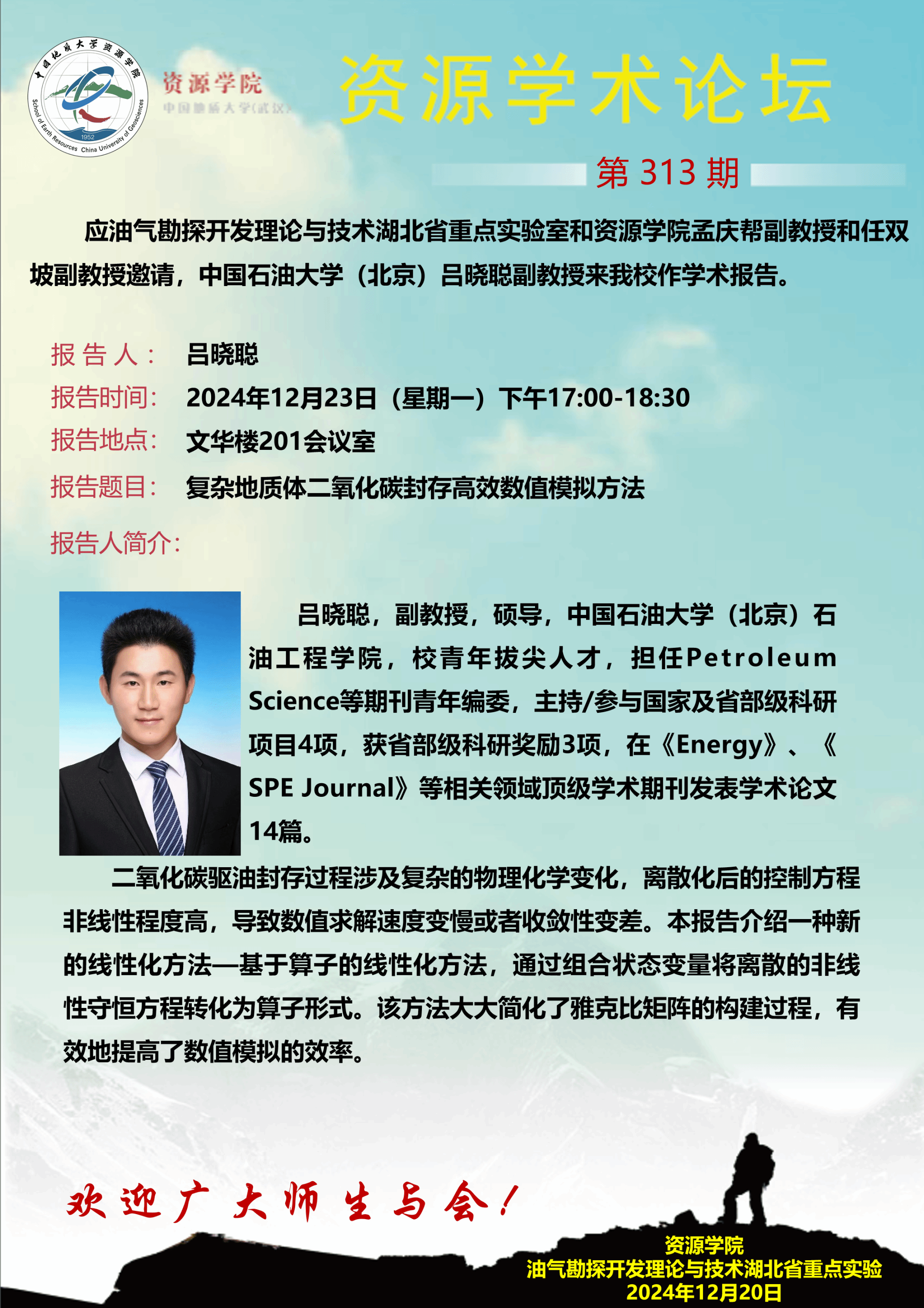 【12月23日】第313期资源学术论坛:吕晓聪学术报告