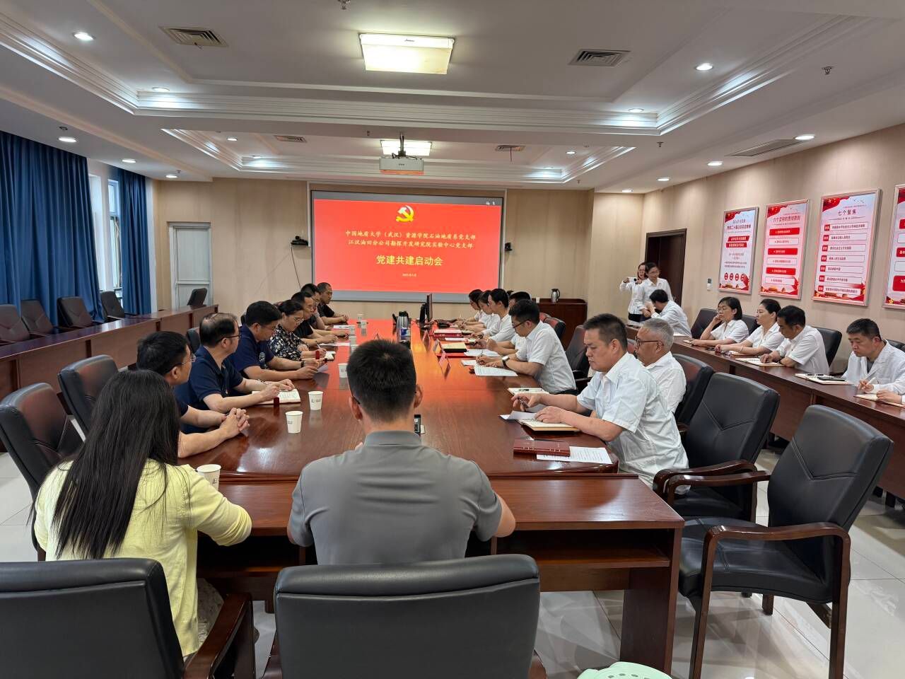 (通讯员 叶青)5月15日,伟德bv1946官网石油地质系党支部与江汉油田勘探开发研究院实验中心党支部开展“支部共建聚合力,技术交流解难题”联合党建活动。会议在江汉油田实验中心举行,双方单位党支部书记、主任及全体党员参加会议。江汉油田勘探开发研究院实验中心主任陈文峰主持会议。