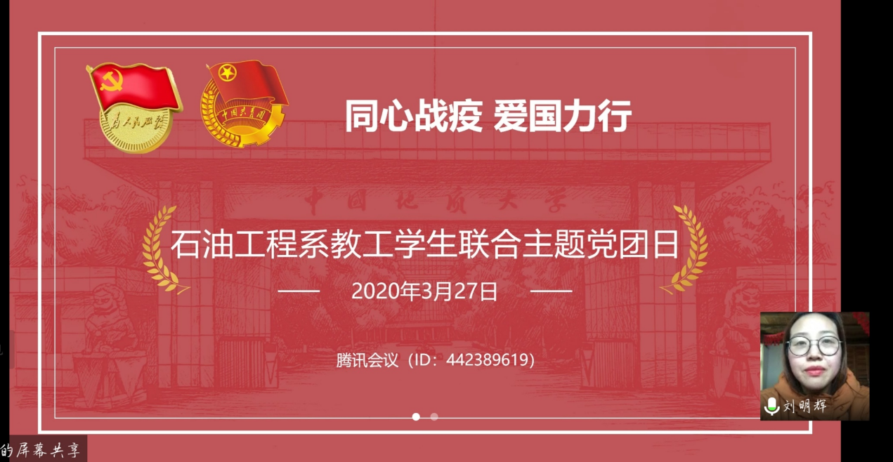 (通讯员:雷寒月)2020年3月27日14:00,公司石油工程系“同心战疫 爱国力行”主题党团日活动顺利开展。参与本次党团日活动的有公司副经理朱红涛教授、石油工程系全体教工以及全院石油工程系大一、大三、大四员工共150余人参会。团委书记刘明辉主持会议。
