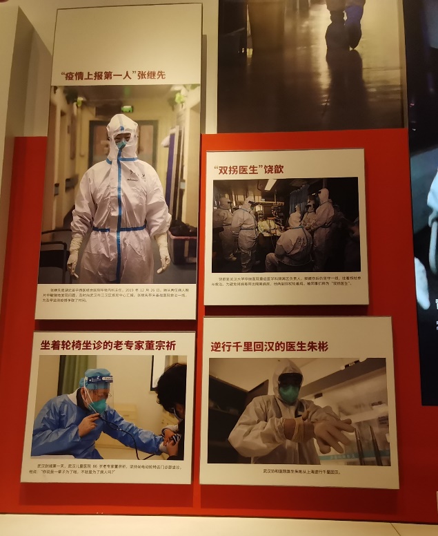 青年教师王维感慨道“行走在抗疫展览中,一幅幅鲜活的画面,一个个动人的场景将我重新拉回那段疫情严峻的日子——街道萧索,人心浮动,刻骨铭心。而如今,当全球依然为疫情焦头烂额的时候,我们空无一人的街道再次热闹喧嚣,商场人头攒动,堵车重现江湖,我们熟悉的武汉回来了,我们的烟火气也回来了。女儿在疫情期间出生,等她懂事了,我要告诉她,在你出生的那年,我们的国家,我们的党,我们的制度做了多么了不起的事,要记得感谢那些为武汉拼过命的人” 。