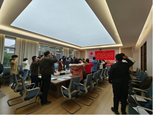 全体参会党员重温入党誓词,白文浩同志领学《中国共产党章程》党的组织制度中“党的民主集中制的基本原则”相关内容。吕帅锋同志领学了习近平总书记在中共中央政治局第九次集体学习时的重要讲话精神、刚颁布的《中华人民共和国爱国主义教育法》、习近平总书记在2023年世界互联网大会乌镇峰会开幕式上发表的重要讲话精神、习近平总书记关于生态文明建设的重要文章、公司《关于进一步加强和改进党支部建设的实施办法》以及“以案示警、以案释纪、以案促改”等六方面内容。