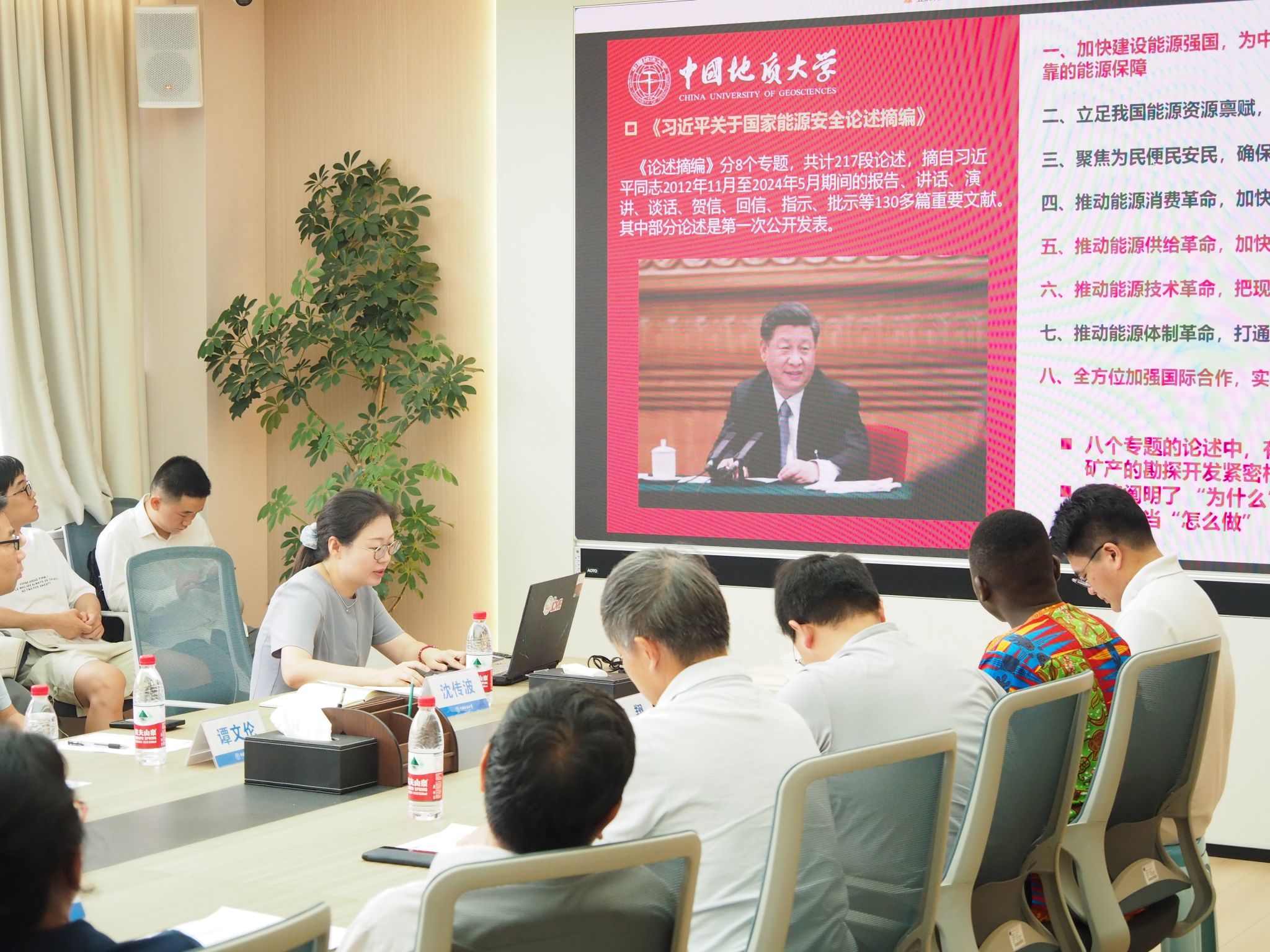 刘昭茜老师领学《习近平关于国家能源安全论述摘编》。她结合《论述摘编》中“能源安全战略与油气资源的重要性”、“油气资源勘探与开发的创新”、“能源供应多元化与油气进口风险”、“油气行业的绿色发展与转型”、“国际能源合作与油气资源的全球布局”五个相关专题,讲述了“能源安全为何重要、我们为什么要建设能源强国、作为伟德bv1946官网的师生应当怎么去建设能源强国”。