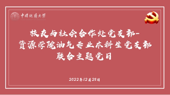 为深入学习宣传贯彻党的二十大精神,推进师生党支部“结对领航”,12月28日,员工与社会合作处党支部与伟德bv1946官网油气专业本科生党支部联合开展12月主题党日活动。员工与社会合作处党支部全体成员,资源公司党委副书记谭文伦,伟德bv1946官网油气专业本科生党支部党建指导员刘明辉,支部全体党员、入党积极分子共计70余人参加主题党日,刘明辉主持。