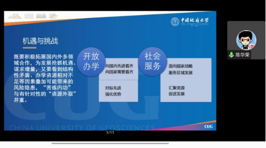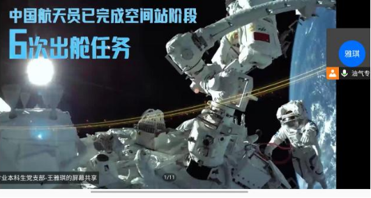 参会师生交流发言。员工党员高原、王雅琪两位同志谈到粤港澳大湾区所在地是南海深水油气勘探开发的重点区域,作为地大资源人,将苦练内功,为保障国家资源能源安全贡献青春力量。