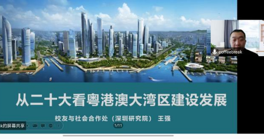 员工与社会合作处副处长、深圳研究院副经理王强讲授专题党课。他以《从党的二十大看粤港澳大湾区建设发展》为题,结合《粤港澳大湾区发展规划纲要》和党的二十大报告中关于粤港澳大湾区建设的表述,从基本概况、综合实力、对标分析、协同创新四个方面介绍了粤港澳大湾区建设的非凡十年。他讲到,建设粤港澳大湾区是习近平总书记亲自谋划、亲自部署、亲自推动的重大国家战略,是新时代中国特色社会主义事业发展的重要引力。他还介绍了粤港澳大湾区的优秀员工事迹,激励同学们专注学业、综合发展,为将来到更宽广的舞台绽放光彩打牢坚实基础。