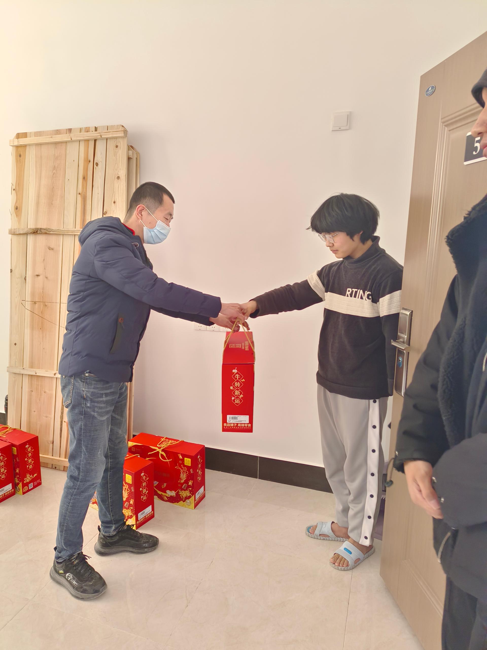 公司领导一行细致查看了留校员工的住宿、学习环境,同亲切留校员工交流,深入了解每位员工的实际需求,嘱咐同学们在校期间注重保障自身安全、用水用电安全、实验室仪器设备安全,同公司保持联系,并为同学们送上充满年味的“新春礼包”。