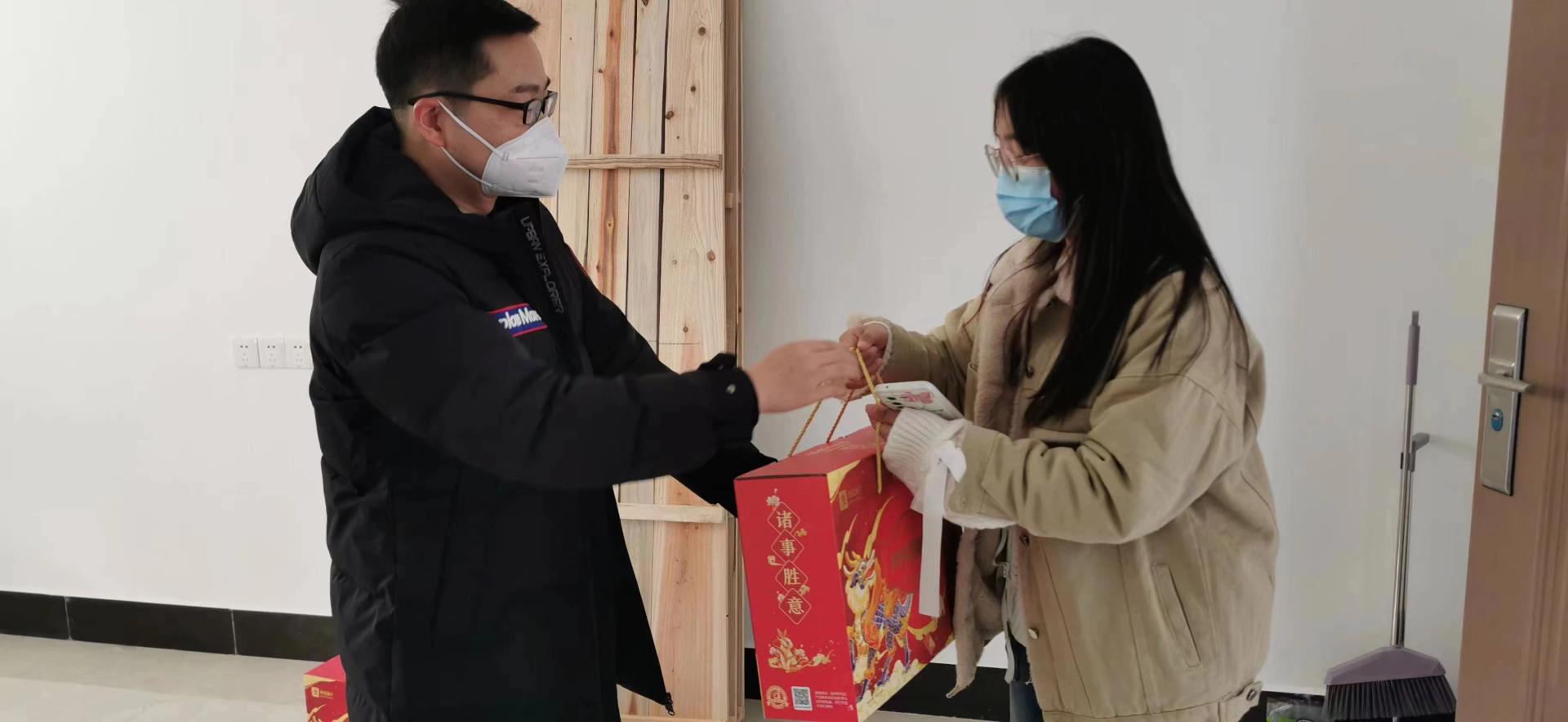 金虎腾跃留浩气,玉兔笑迎锦绣春。1月18日,公司副经理朱红涛、公司党委副书记谭文伦、班主任骆杨前往南望山校区54栋、57栋、研究生工作室走访慰问寒假留校员工,为留校员工送上新年祝福和慰问礼包。