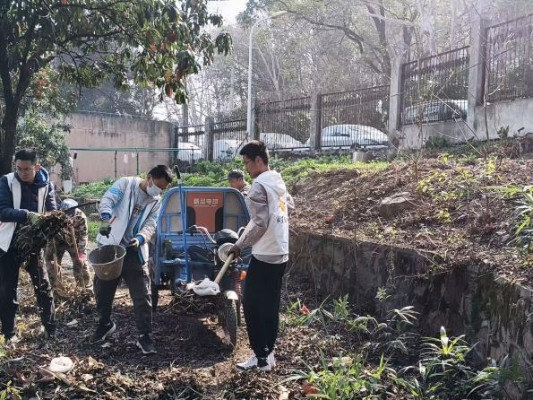 3月5日上午,“小红星”们于北区映山塘前集合并进行活动前培训。同学们与北区社区工作者对接后领取清扫工具,在工作人员的指导和帮助下共同进行清扫活动。在工作过程中,志愿者们互相帮助,清扫了北区映山塘周围社区的枯枝败叶和垃圾。经过志愿者们共同的努力,原本脏乱的地面变得干净整洁。上午十一点,清扫活动圆满结束,获得社区工作者的一致好评。活动结束后,员工志愿者与社区志愿者合影留念。