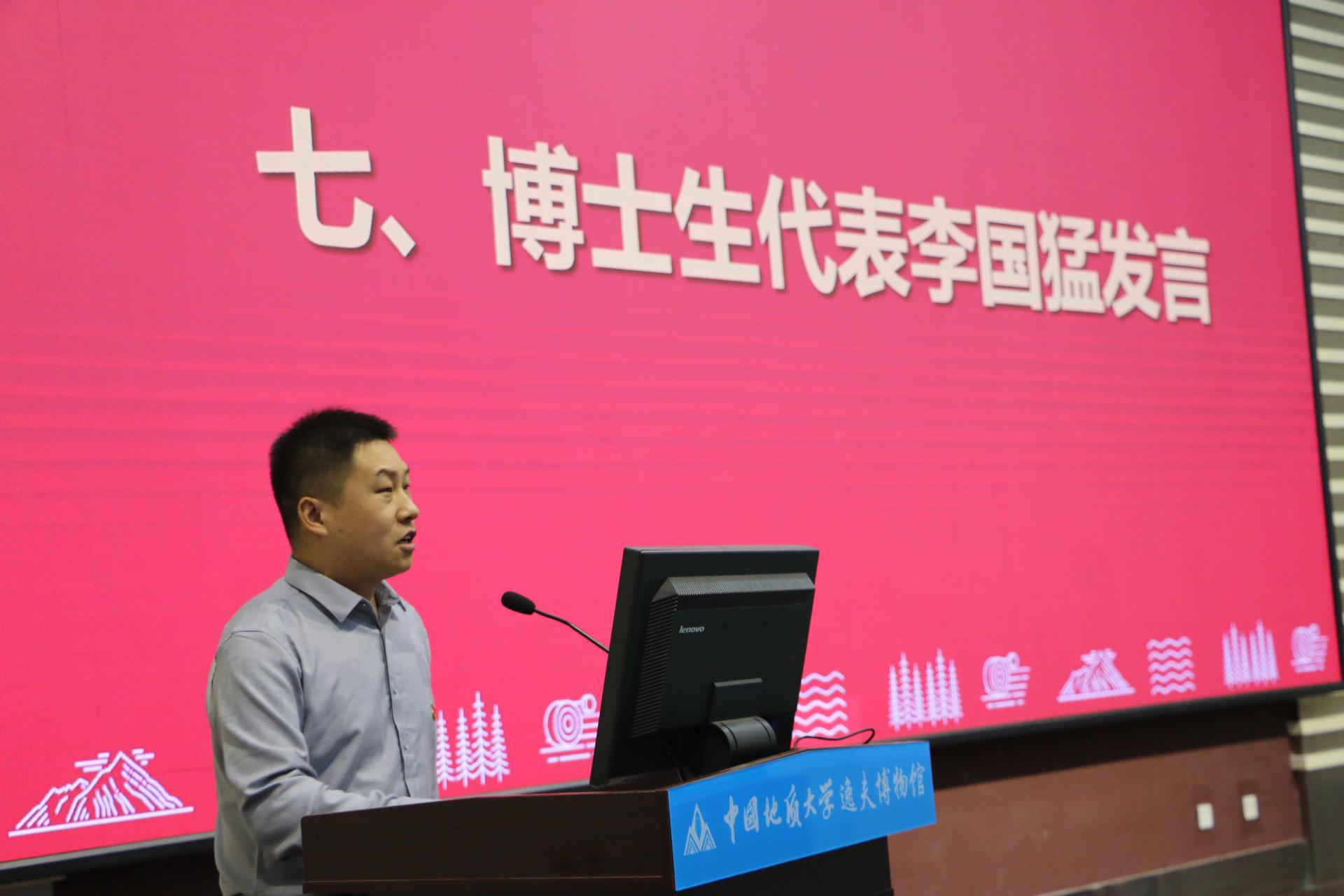 2019级本科生胡强分享了在导师的指导下和公司的关心下,自己从一个对地质一无所知的调剂生到爱上地质并选择继续在本院攻读博士学位的变化过程。他号召同学们依托公司公司优势平台和资源,勤奋学习,艰苦奋斗。