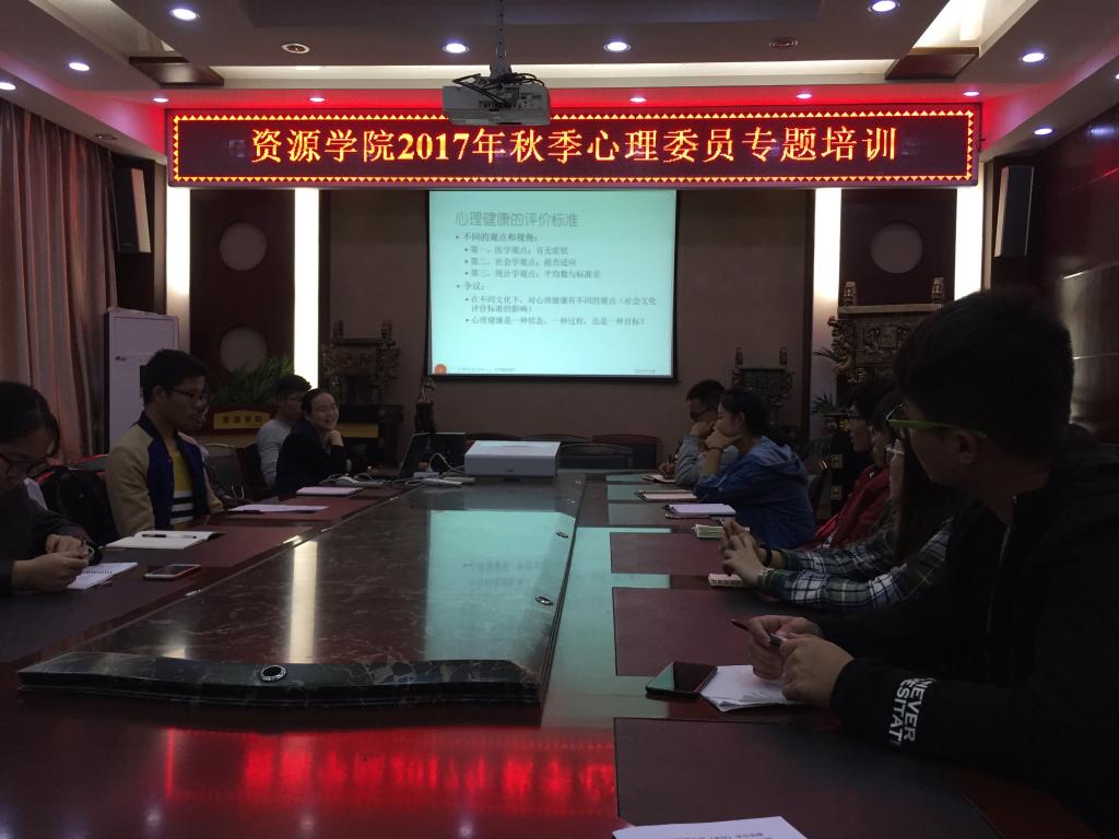 (通讯员 章帆)11月9日晚6时许,30余名心理委员来到伟德bv1946官网主楼330报告厅,参加公司举行的2017年秋季学期心理委员专题培训。此次培训会公司邀请到了老员工心理咨询中心的周春燕老师,。培训会由公司心理联络员章帆主持。