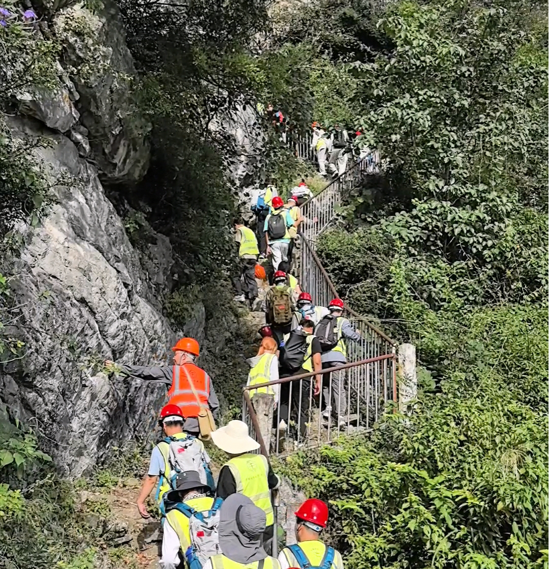 一石激起千层浪,百余首地质诗歌在秭归地质实习基地即兴创作。9月15日的茅垭公路云雾缭绕,2022级员工在秭归茅垭村开展地质实习。秭归实践教学团队学术指导刘晓峰老师随队在茅垭村路线中触景有感,即兴吟诵两句七言诗:路线飘在白云间,原来你我是神仙。这两句简短却意境深远的诗句一经转发至实习班级群,便立即引发了同学们的热烈反响和积极参与。在接下来的50分钟里,班上30位同学纷纷作诗对句,将自己对地质实习的感受和对自然之美的感悟融入其中。“手握罗盘测山川,立志为国寻矿产”“携手踏勘长江边,足下山河任我攀”“山水为伴心自远,地质情怀满襟间” “地壳变迁岁月长,岩层叠嶂见沧桑” “芝茅橘柚绿连天,盘山而上百万年” “金钉一落乾坤定,星移物转化心间”等等。同学们以诗传情,以地质为语,不仅展现了地质科学的严谨与浪漫,表达了员工们对地质学科的热爱,更传递了地质人勇于探索、不懈追求的精神风貌,增强了大家作为新时代地质人的身份认同感和使命感。
