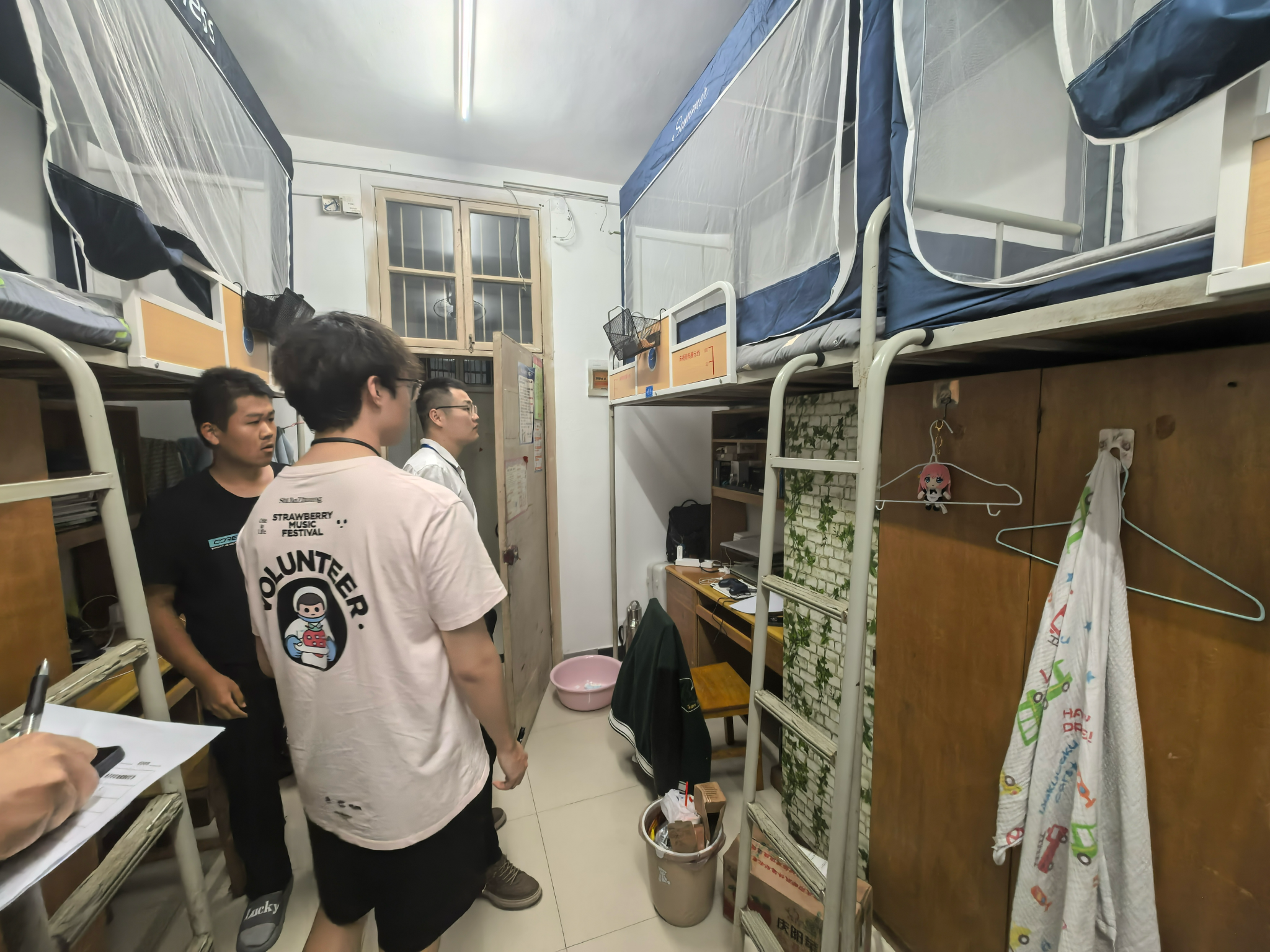本次评比主要从以下三方面进行打分,分别为:宿舍整理、物品收纳以及卫生清洁。员工住宿服务中心的周志强、干晓华、张连汝、胡海艳四位老师带领评委小组,实地走访参赛宿舍。