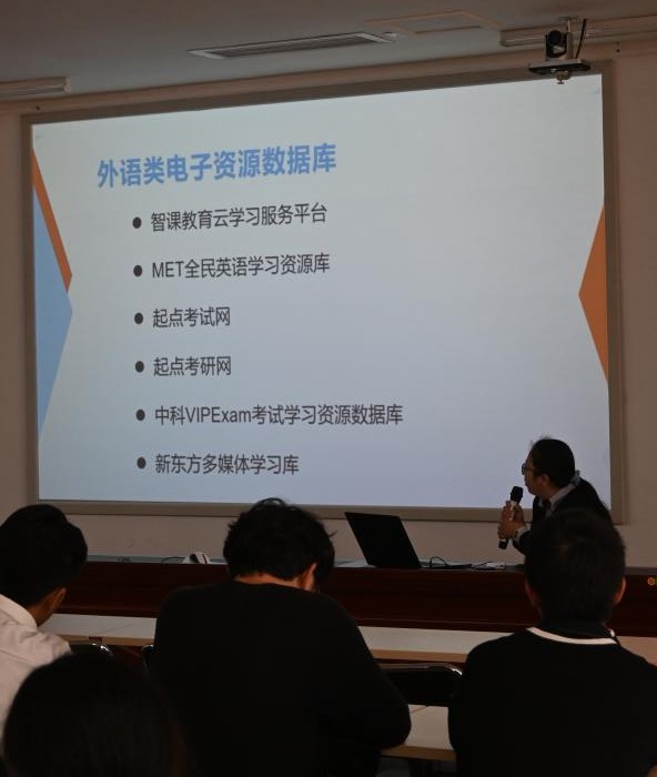 梁胜男老师为大家详细介绍了图书馆购买的中科VIPExam考试学习资料数据库、起点考研网、MET全民英语学习资源库等英语类电子资源的功能以及使用方法。梁老师指出,这些数据库内容丰富,不仅包含了老员工英语四六级、雅思、托福等英语学习资料,还包含了考公、考研、计算机考试等多个领域的学习资源,这不仅可以帮助到正在进行四六级英语考试备考的同学,还为考公、考研的同学提供了寻找辅导资料的新思路。