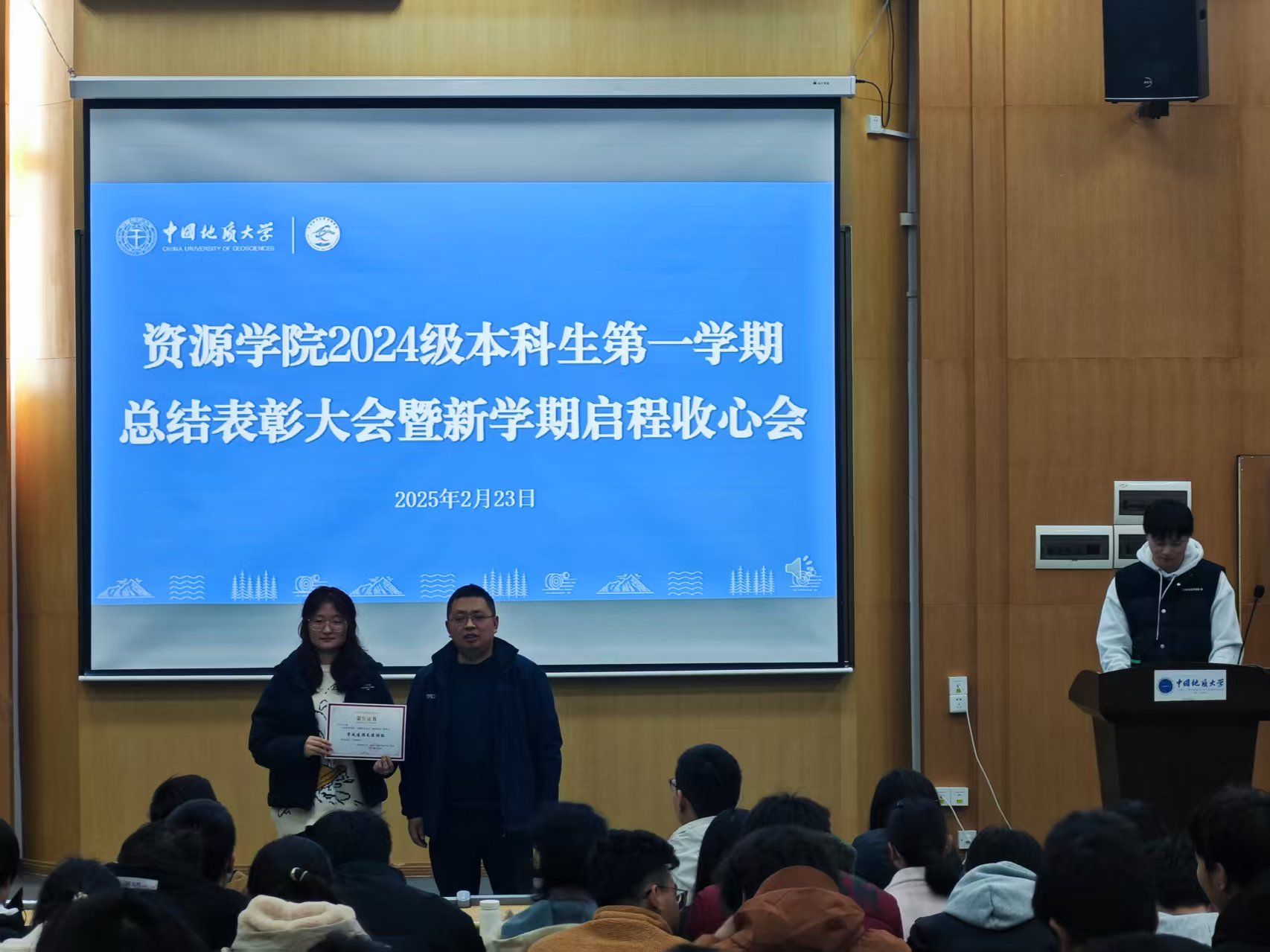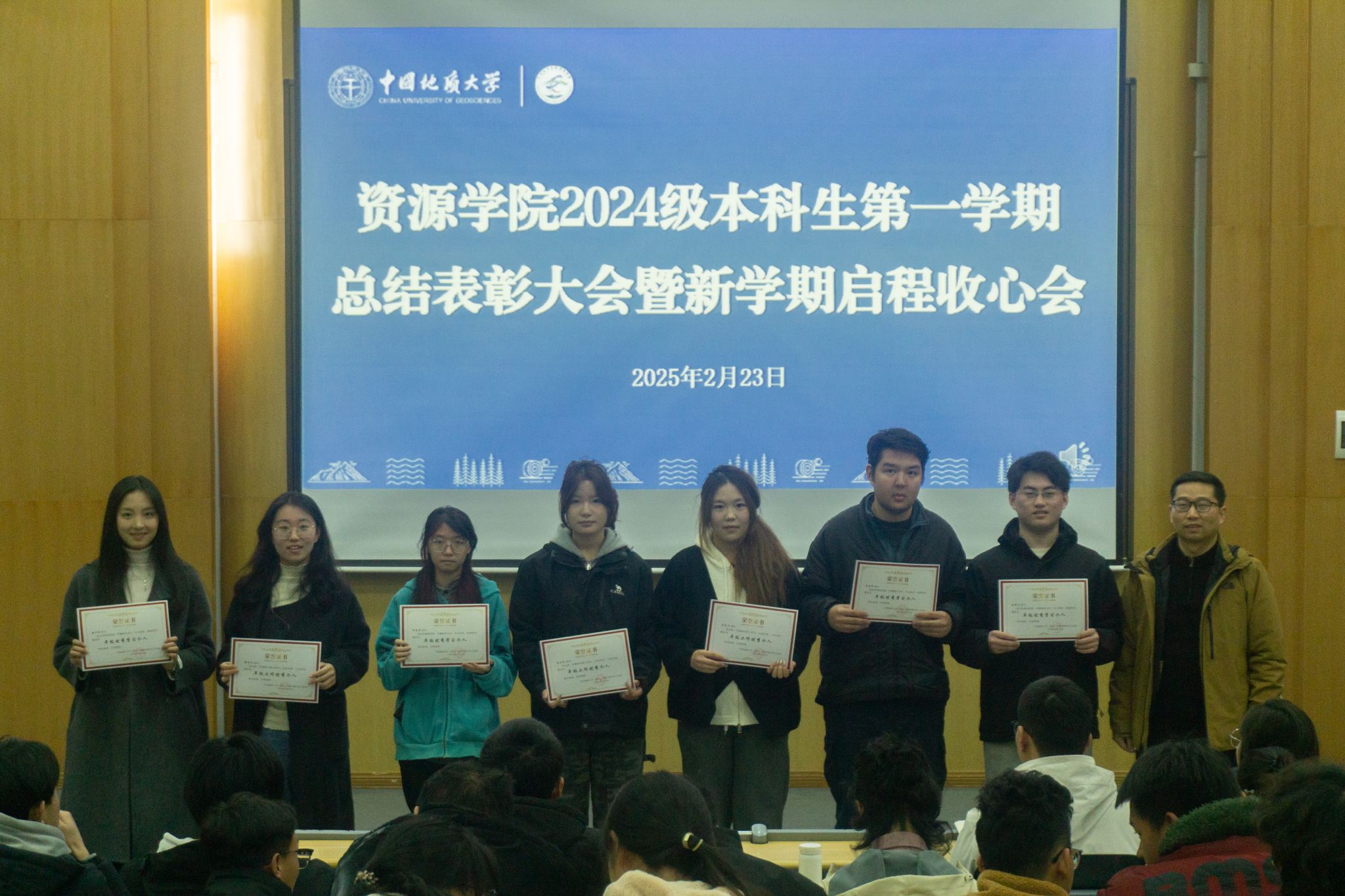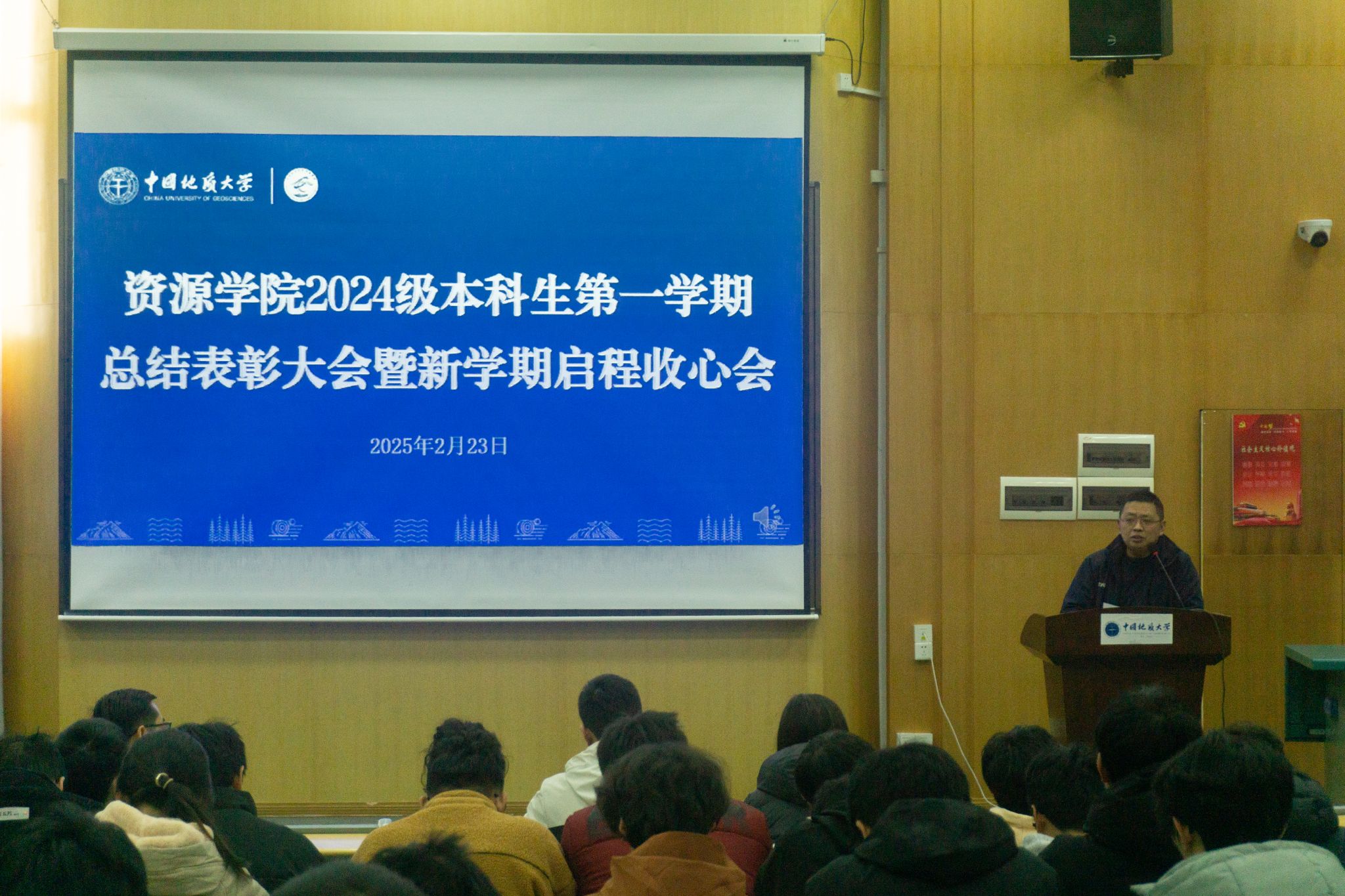 (通讯员 李美玉 摄影 汪佳玉 陆佳玉)2月23日,伟德bv1946官网在南望山校区西区教三楼109教室召开2024级本科生第一学期总结表彰大会。公司安全保卫部副部长彭冠军,公司党委副书记谭文伦,安全保卫部法律援助办主任魏景明,班主任代表付乐兵、周红、陈志军,专兼职辅导员,李四光计划成员代表及2024级全体本科生参与会议。会议由2024级本科生辅导员刘睿主持。