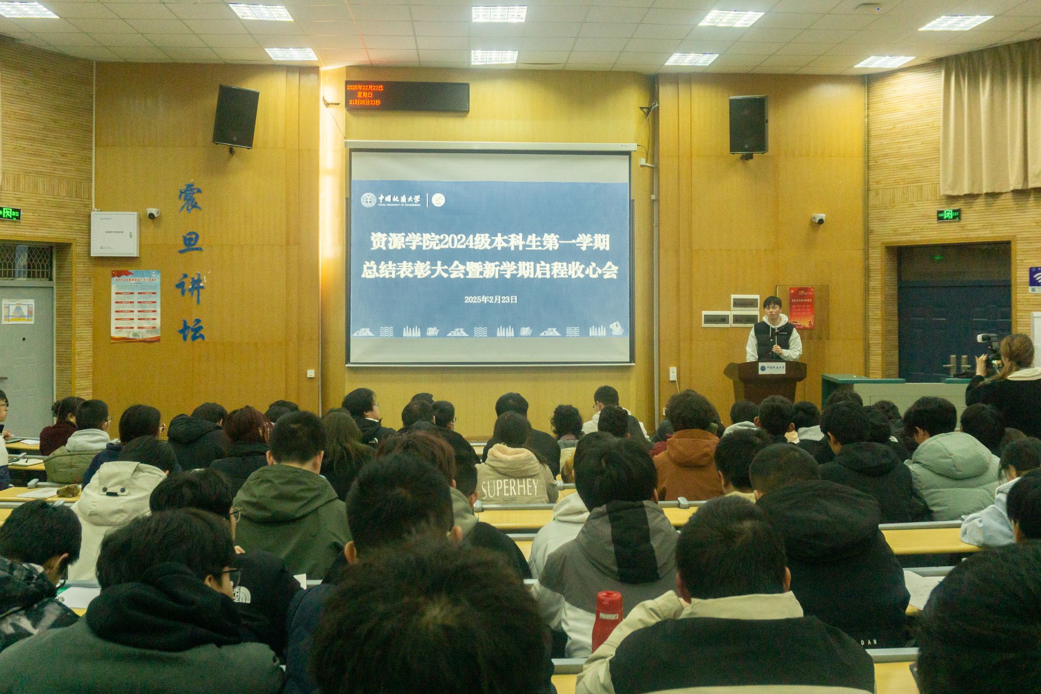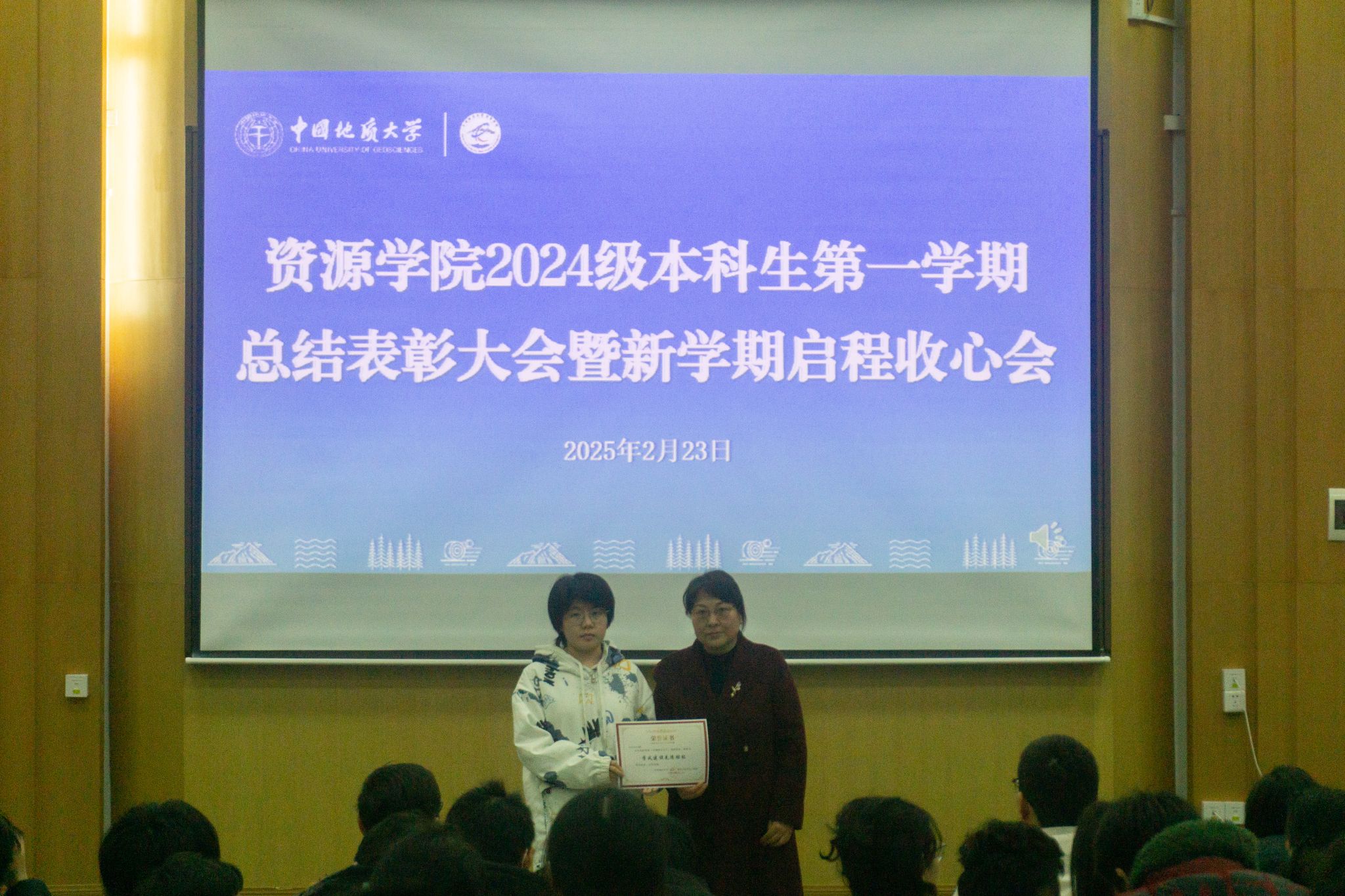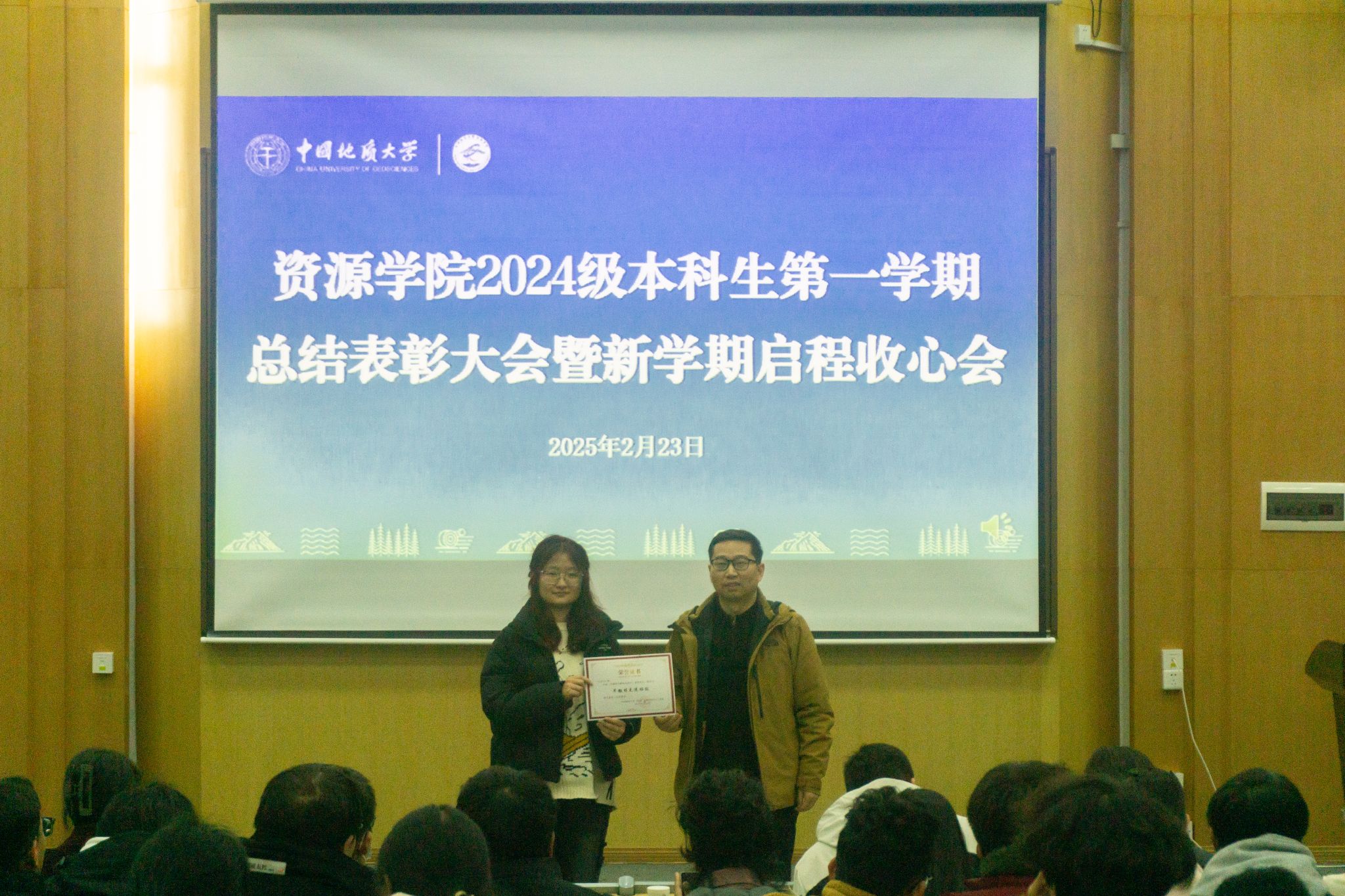 (通讯员 李美玉 摄影 汪佳玉 陆佳玉)2月23日,伟德bv1946官网在南望山校区西区教三楼109教室召开2024级本科生第一学期总结表彰大会。公司安全保卫部副部长彭冠军,公司党委副书记谭文伦,安全保卫部法律援助办主任魏景明,班主任代表付乐兵、周红、陈志军,专兼职辅导员,李四光计划成员代表及2024级全体本科生参与会议。会议由2024级本科生辅导员刘睿主持。