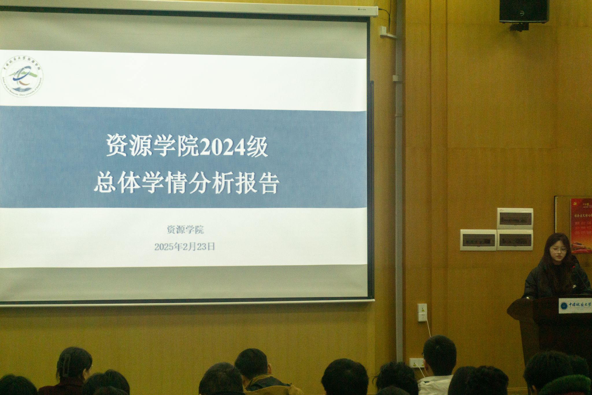 12位班级学习委员从成绩分析、科目成绩比对、现状分析等方面分析了各自班级的学习现状。2024级本科生兼职辅导员鲍涵做《2024级本科生总体学情分析报告》。她从学情总体概况、横纵对比研判、重点课程分析、学情问题分析等方面全面回顾了2024级本科生第一学期的学习情况,并对大一下学期的学习生活提出具体建议。