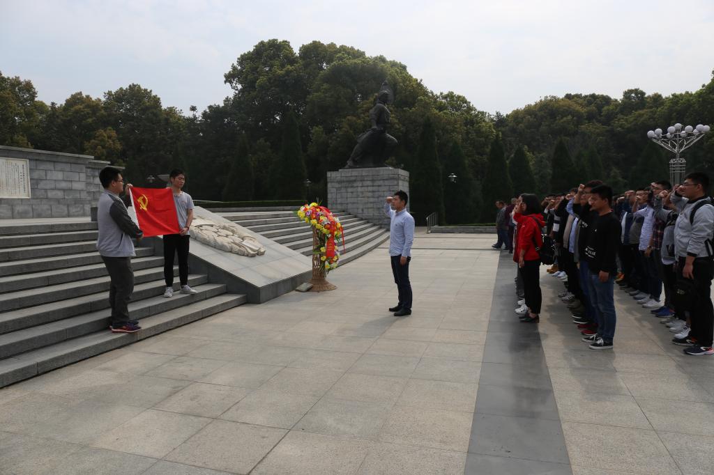 上午9时许,师生一行来到黄麻起义及鄂豫皖苏区革命烈士陵园。进入陵园,来到革命烈士纪念碑前,全体师生整齐列队,进行了庄严的纪念仪式。大家向革命烈士进献花圈,三鞠躬,并重温入党誓词。响亮的誓言传递着党员同志对革命烈士深深的敬意。