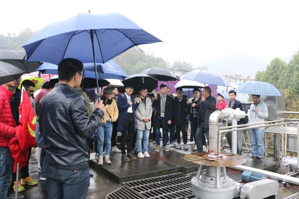 五十分钟的考察结束后,学员们来到秭归县污水处理厂,范雁冰厂长带领大家参观了粗细格栅,沉沙池,氧化沟,生物反应池,排水口,网络监控室等各个单元,为大家详细讲解了污水处理的工艺流程。范雁冰指出,秭归县污水处理厂与秭归县搬迁工程同步设计施工,建成后年处理生活污水800多万吨,在保护长江水源,落实绿色发展方面发挥着重要作用。