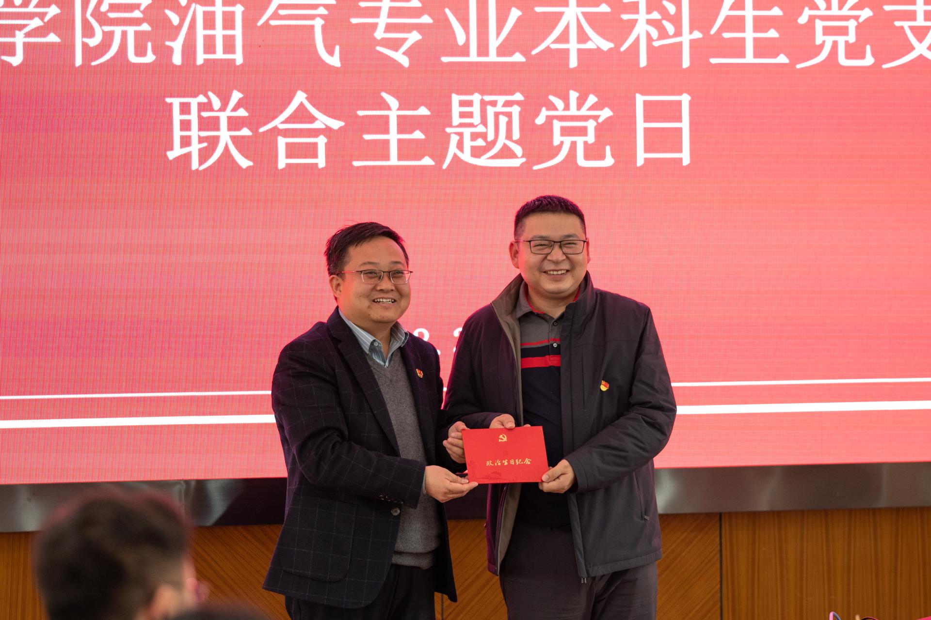 陈华荣同志分享学习体会。他从国家经济发展和能源安全战略角度,指出油气安全是关系国计民生的重大战略问题。解决油气资源短缺问题,关键靠基础理论突破和勘探开发技术革命。他鼓励油气专业全体党员向优秀员工们看齐,努力学习、肩负使命、接续奋斗,创造新一代地大人的成就。