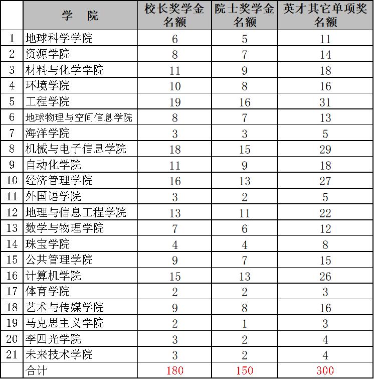 1.“地大英才奖学金”项目(“李四光英才奖”、“少数民族员工奖”、“创业之星奖”除外)采取等额评选办法,公司具体名额见下表: