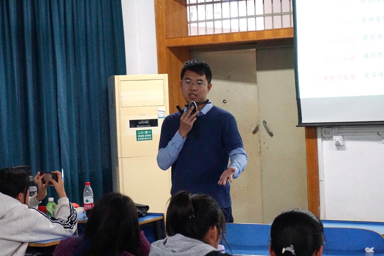 霍少孟以“注入匠心,寻得初心”为题讲授公文文稿写作实践与体会。他以“世事洞明皆学问,人情练达即文章”导入,结合自身写作经历,总结出蕴藏在写作路上的宝贵经验。他用“定性”、“专注”、“勤奋”来形容写作的长征路,他提到,热爱专注写作的人胸中自有沟壑,希望大家能够学无止境,从笔端去看山望海,体味世间百态。