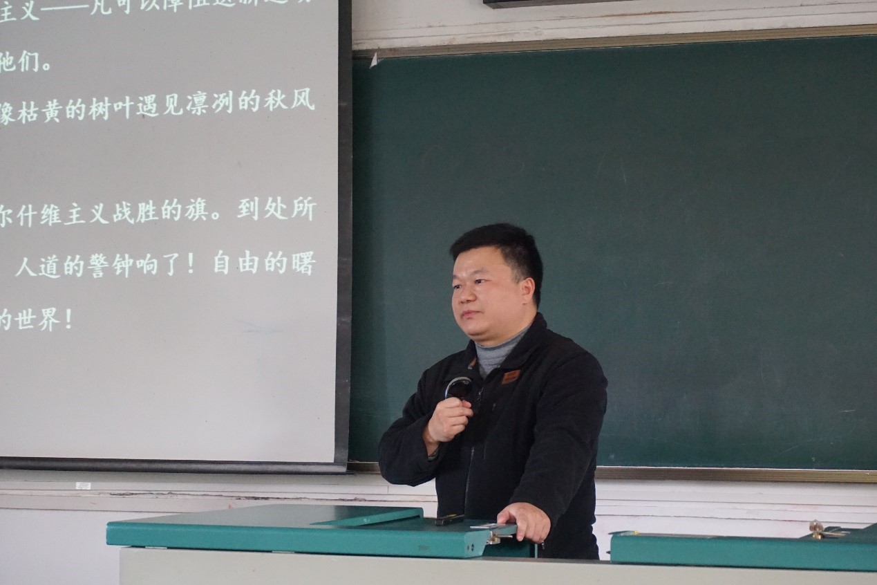 卢勇以“中国共产党百年辉煌及经验启示”为题,讲述他对于党的百年征程的感悟与思考。他简要梳理了中国共产党百年征程中的重要节点,并将历史形象地比作一颗树,而中国过去的这一百年,便是那遒劲的树根,成就了世界上的最璀璨的这段中国文明。他带领大家庄严诵读《共产党宣言》,在激昂的声音中,感受共产党人在那个风云变幻年代中坚如磐石的信仰信念。他希望,生在红旗下,长在春风里的青年一代,能够以史明志,学史增信,走好当下路。