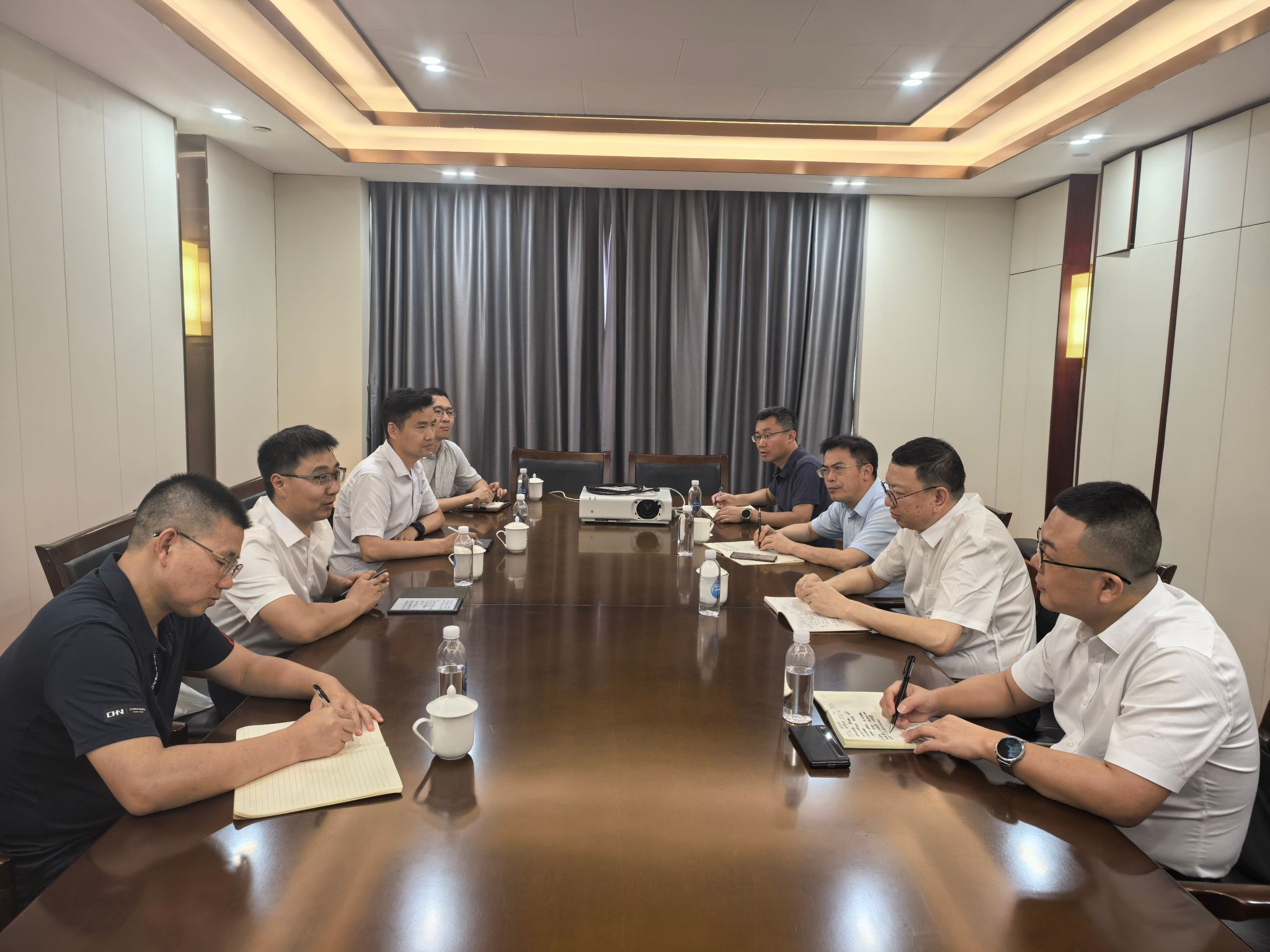 在江西省地质局,双方举行合作座谈。江西省地质局党组成员、副局长吴俊华,地质矿产处处长谢春华,基础与数字地质处处长彭琳琳及第一地质大队队长龚敏参加座谈。