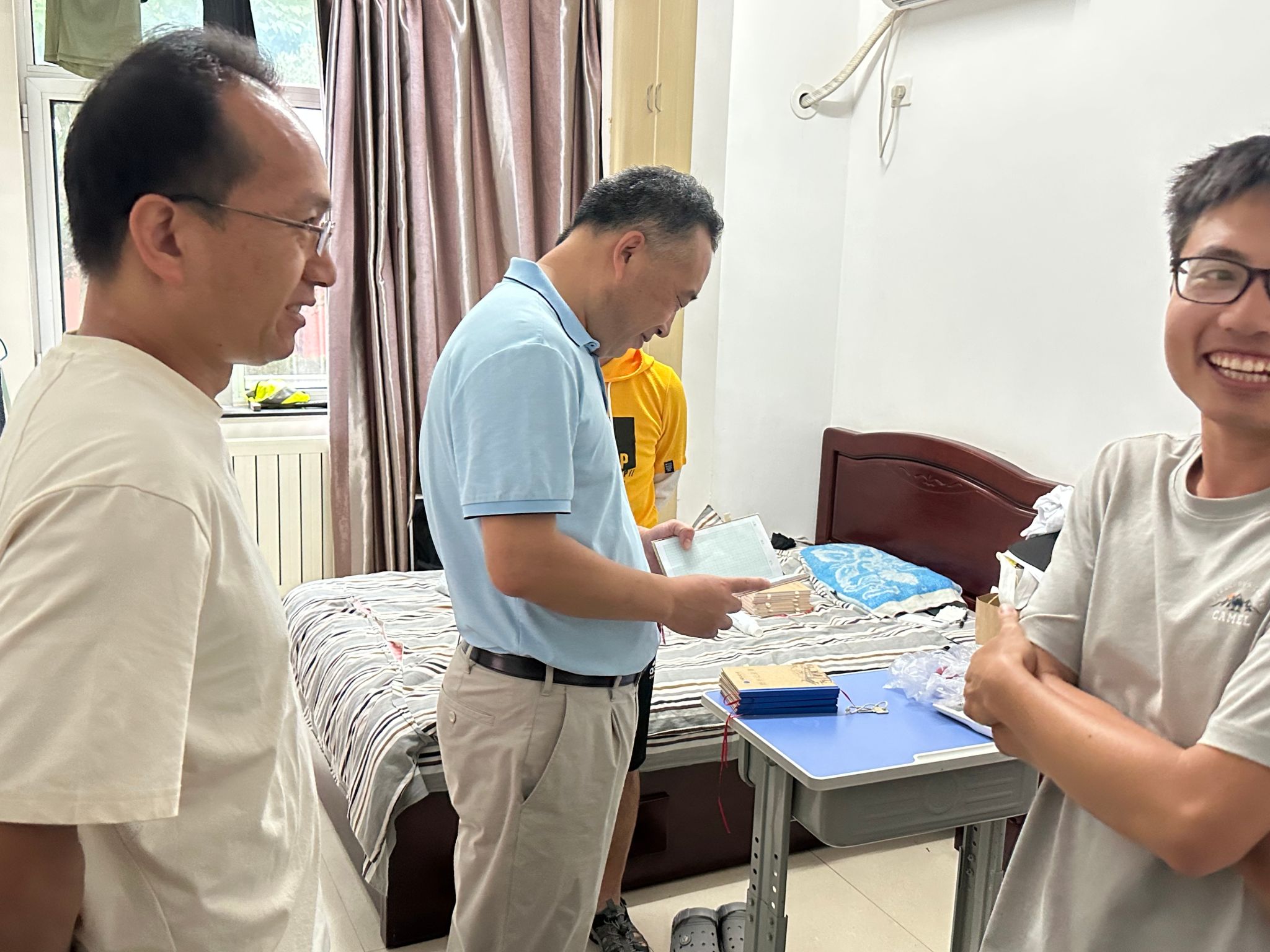 在员工宿舍,他耐心细致询问了同学们在实习站的学习进度与生活状况。他叮嘱同学们,在外实习要注意安全,一切行动听指挥,安全、顺利、圆满完成实习。