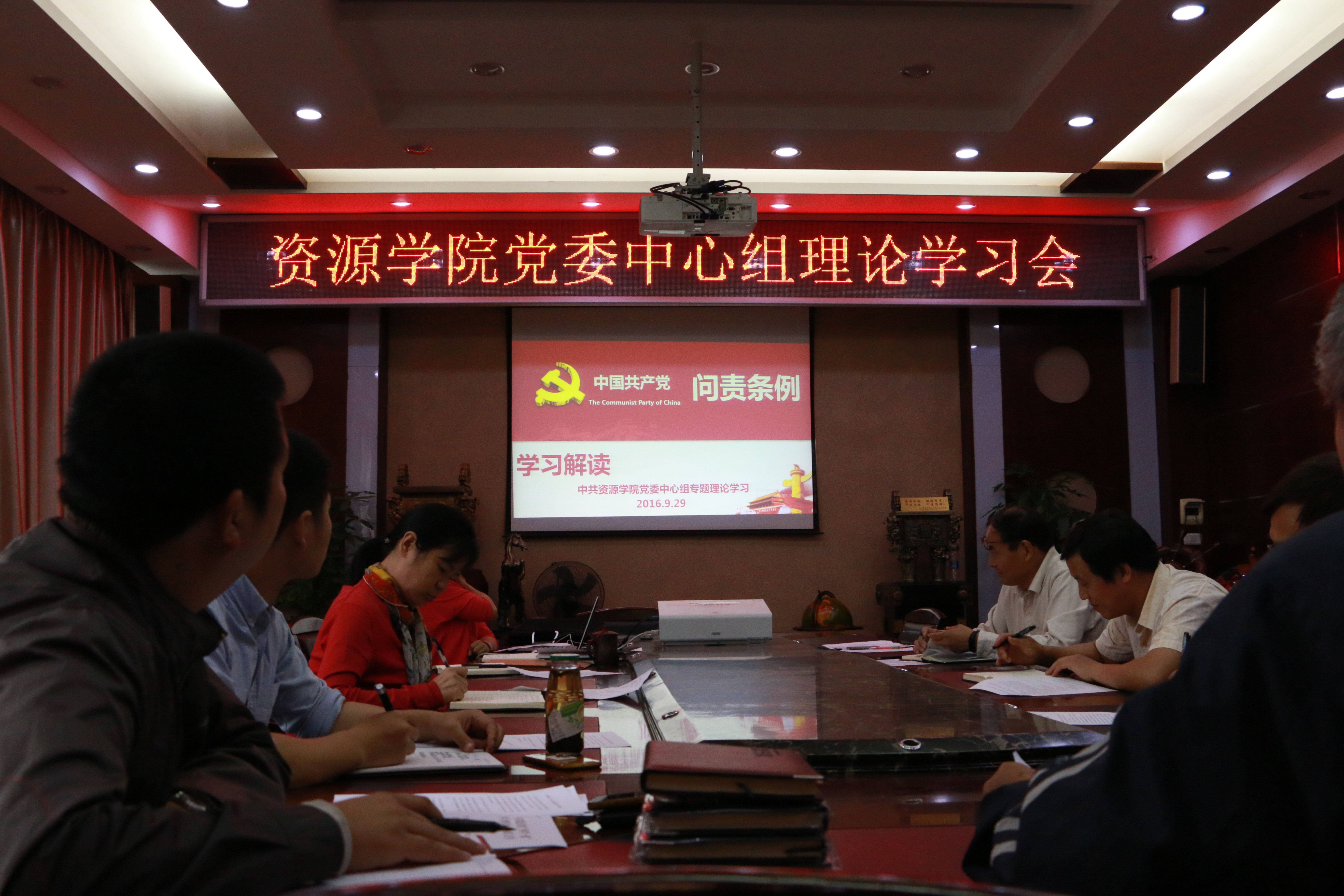 郭秀蓉首先介绍了资源公司党委中心组学习制度及2016年度党建工作任务指导书,同时安排了2016年党委中心组理论学习计划。她强调,各支部要根据公司的学习计划,认真落实学习内容。随后,郭秀蓉带领大家学习了《中国共产党员问责条例》。郭秀蓉从“条例”出台的背景、条例的四大亮点及具体内容三个方面为全体与会人员对“条例”进行了详细的解读。