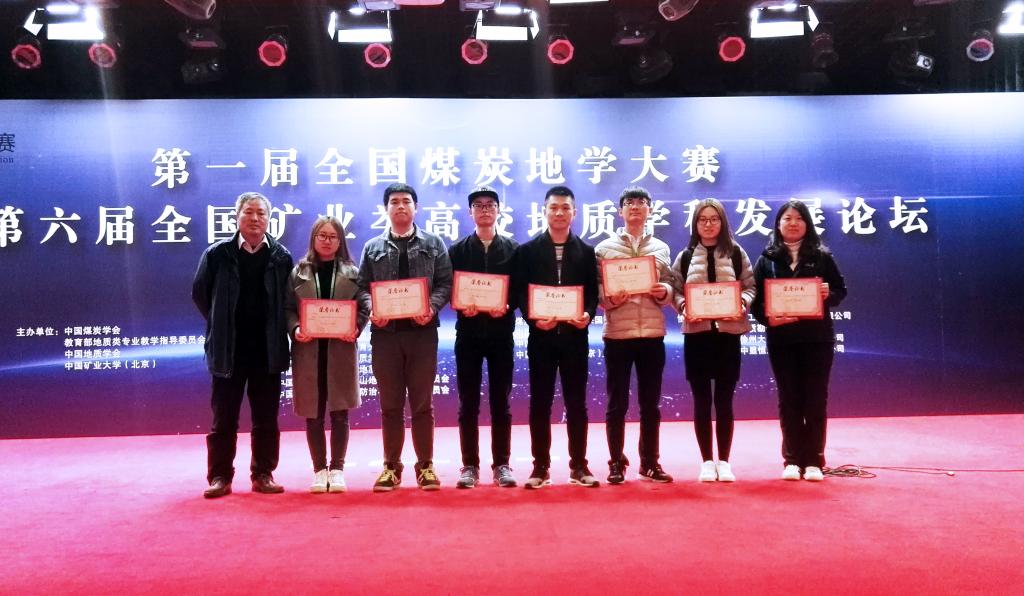 11月5日-7日,第一届全国煤炭地学大赛暨第六届全国矿业类高校地质学科发展论坛在中国矿业大学(北京)举行,来自全国近20所地学类高校参加了竞赛。代表公司参加此次大赛的是来自伟德bv1946官网资源勘查工程专业(煤及煤层气方向)025141班的周文宇、侯亚飞、刘紫璇、尤俊杰、朱冲和郑远鑫等6名同学,他们在竞赛中奋勇拼搏,锐意进取,通力协作,沉着应战,展示了良好的精神风貌和扎实的专业功底,赢得了专家评委的一致认可和赞许,为公司争得了掌声和荣誉,先后荣获“知识竞赛”团体一等奖;“本科技能大赛”岩心编录组一等奖、团体二等奖;标本鉴定组三等奖。吴立群老师获得“优秀指导教师奖”,周文宇同学获得“知识竞赛”个人一等奖,侯亚飞同学获得“知名教授与员工对话”个人一等奖。