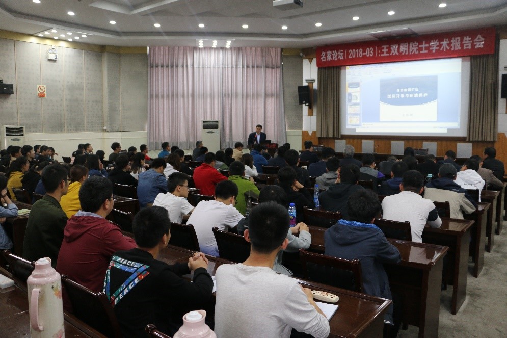 报告会上,王双明院士以《生态脆弱矿区煤炭开采与环境保护》为题,分别围绕研究工作背景、煤水资源地质特征、生态环境主要特征、隔水岩组与采动变化、环境保护理念与思路等五大方面,就煤炭资源的地位、优势、研究前沿、发展前景及存在问题等方面进行了详细讲解,并对未来时期开发煤炭资源等问题提出了合理建议。王双明院士的报告内涵丰富,数据详细,论证严谨,博得阵阵掌声的同时也为在场师生今后的科学研究提供了很好启发。