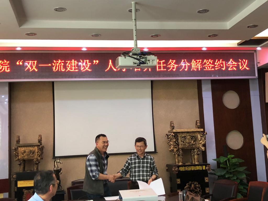 会议的议题有三项:周口店实践教学改革研讨、督导听课意见反馈和“双一流建设”人才培养任务分解签约。教学委员们结合野外实践教学资源以及教学内容的需求等方面,对周口店实践教学改革进行了认真研讨,最后决定由现行的6周周口店实践教学改革为4周周口店+2周秭归实习方案。公司督导对近期听课情况进行了反馈,指出了部分任课教师授课的优缺点,并提出了改进建议。李建威经理代表公司分别与四个专业负责人签订了人才培养任务分解协议,在协议中明确了建设任务及权利。李建威经理最后总结发言。