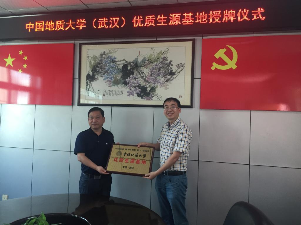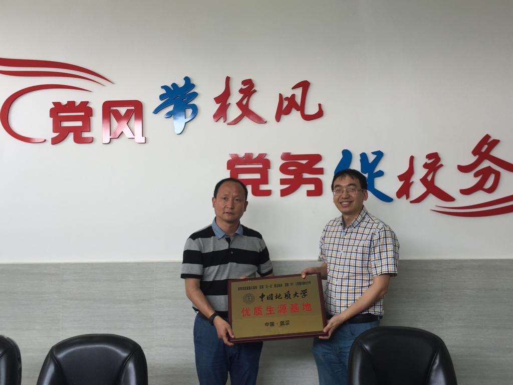 下午2时许,赵葵东一行来到江陵中学进行招生宣传。江陵中学董事长王敬林、副董事长熊善林、办公室副主任李清成、部分高三年级班主任参加了座谈会。座谈会开始,王敬林指出公司老师对地大较为了解,地大招办工作人员曾多次到公司交流,非常欢迎赵葵东副经理一行为公司授予“优质生源基地”铜牌。