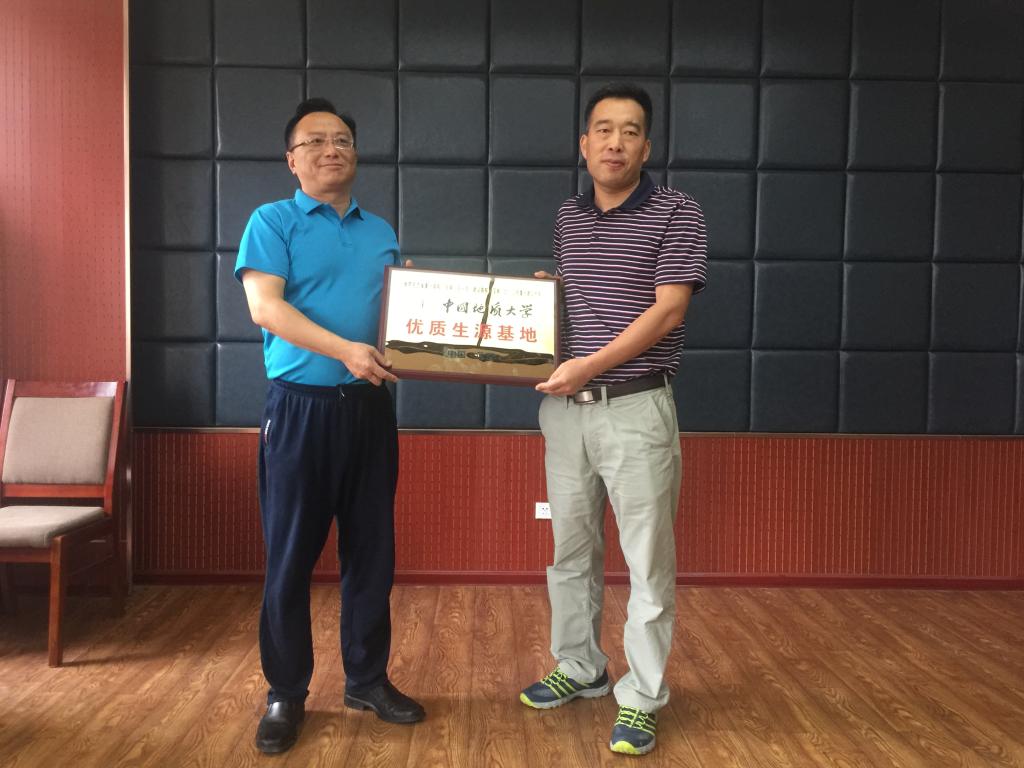 5月24日上午10时许,朱红涛教授一行走进河南省尉氏三中(南校区),受到了焦凤民董事长等公司领导的热情接待。在座谈会上,通过播放《与地大·共芳华》的公司宣传视频,让尉氏三中(南校区)与会人员直观的了解到公司基本情况。然后朱红涛详细介绍了公司公司产品、团队建设、产学研平台、人才培养等方面的优势,并与尉氏三中(南校区)集团领导及年级主任就员工关切的问题进行了详细的交流。随后,双方签署了《联合共建优质生源基地协议书》,朱红涛代表公司向该授予优质生源基地铜牌。