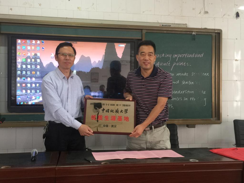 (通讯员:王向东)为深入贯彻公司“十三五”规划中关于提高生源质量的战略部署,积极落实《伟德bv1946官网(武汉)提高本科生生源质量与就业质量行动计划》及“经理中学行”等招生宣传工作,伟德bv1946官网副经理朱红涛教授、辅导员王向东一行2人于5月23日至25日赴河南省开封市高级中学(新校区)、河南省尉氏三中(洧川校区<原尉氏三高>)、河南省尉氏三中(南校区<原尉氏一高>)等三所河南省示范性高级中学开展招生宣传活动,举行优质生源基地授牌仪式。