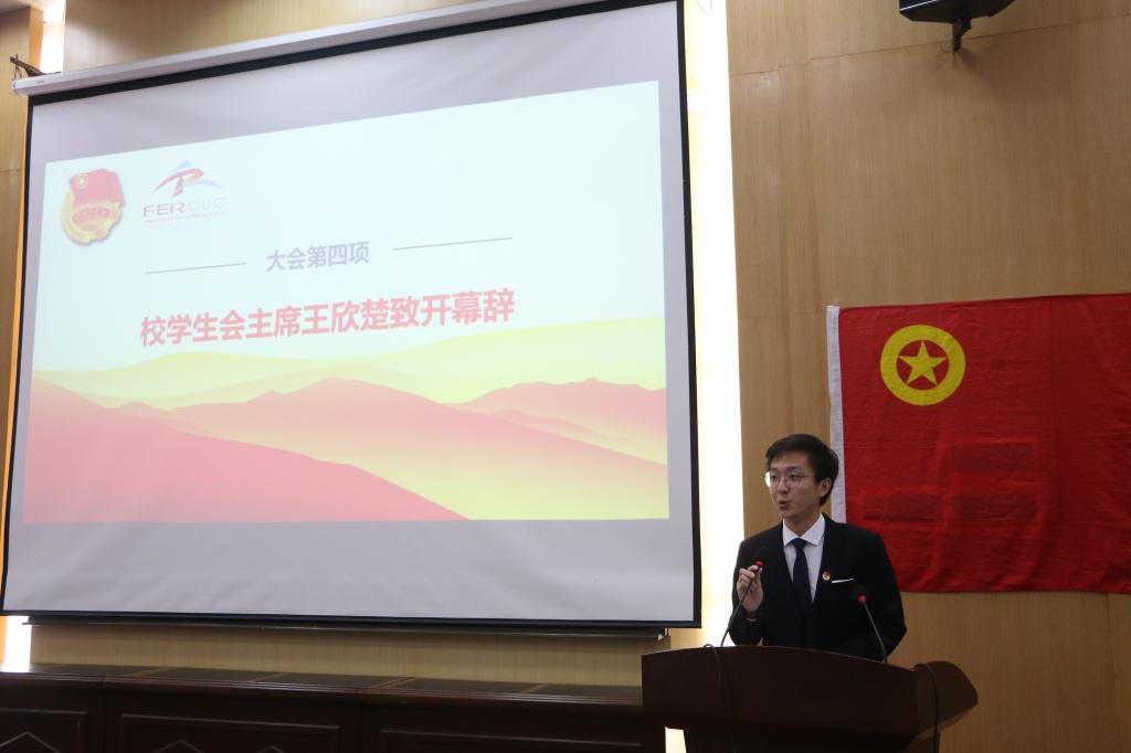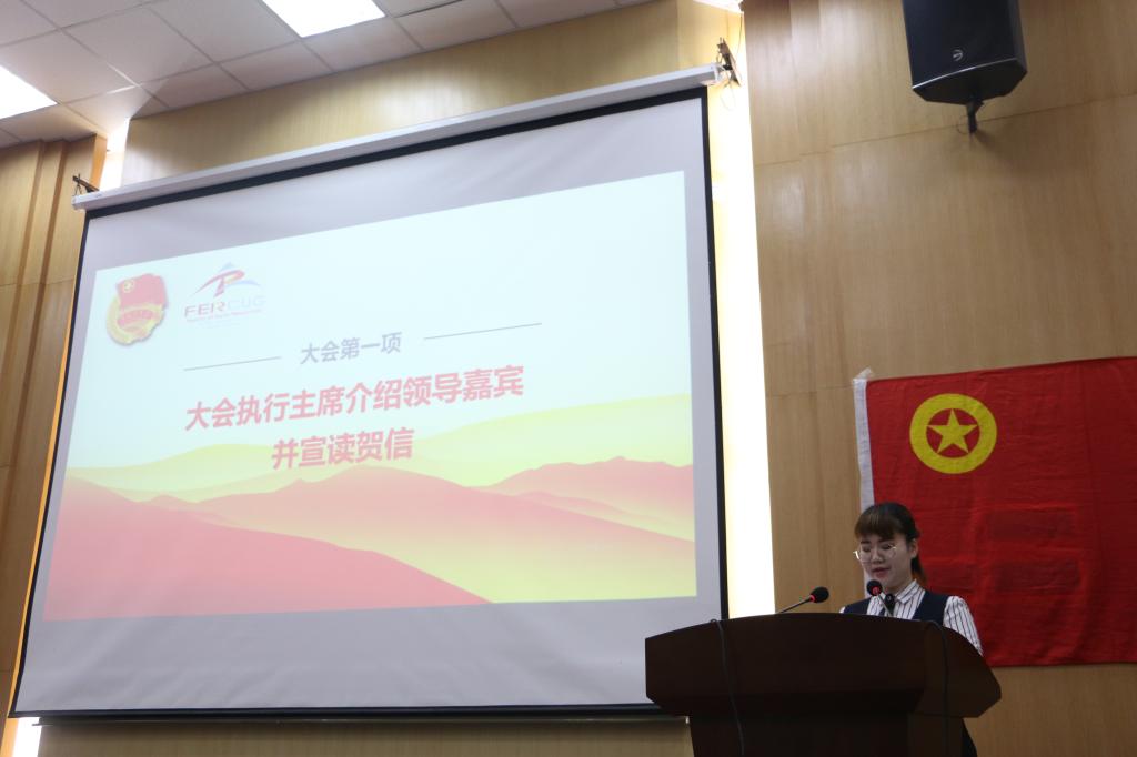 大会执行主席、院团委副书记谢雨彤介绍到会的领导嘉宾并宣读来自武汉大学电气工程公司、浙江大学地球科学公司、中国石油大学(华东)地球科学公司、伟德bv1946官网(武汉)员工会、伟德bv1946官网(武汉)研究生会等27封来自各兄弟高校、院系的贺信。
