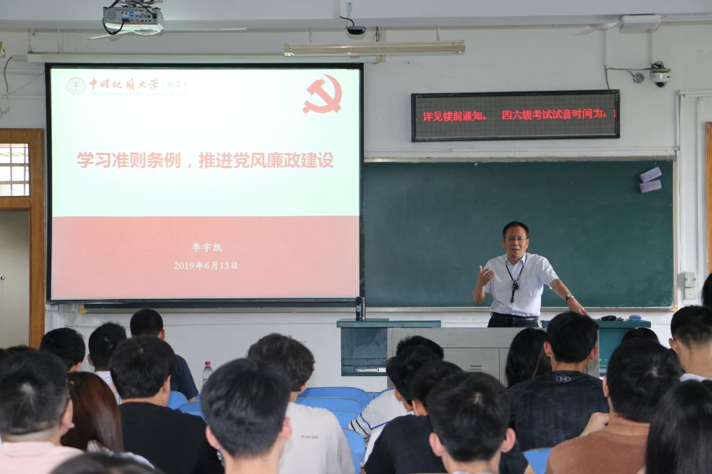 (通讯员 郭晟彬)又是一年六月毕业季,一批学子结束了大学学习生涯,顺利毕业。在这南望山下梧桐叶最绿的时节,伟德bv1946官网于6月13日在教一楼305教室举行了2019届毕业生党员党风廉政教育暨组织关系转接教育活动。资源公司党委书记李宇凯、党建辅导员史邵贤和伟德bv1946官网2019届全体毕业生党员参加了本次活动。史邵贤主持活动。